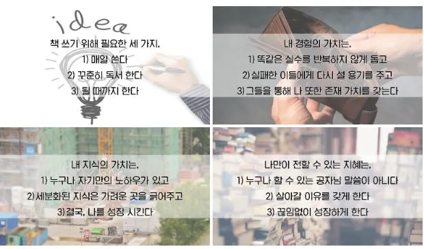 내 경험을 책에 담아 많은 사람이 더 나은 선택을 할 수 있게 돕습니다. 퇴직 후 1인기업 [월간 책방]에서 책 쓰기 과정을 운영 중입니다.