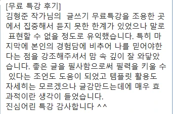 특강 만으로도 글쓰기에 자신감 붙게 할 것입니다.