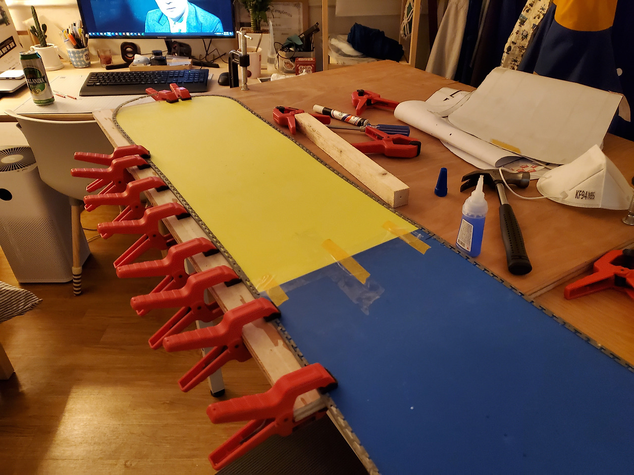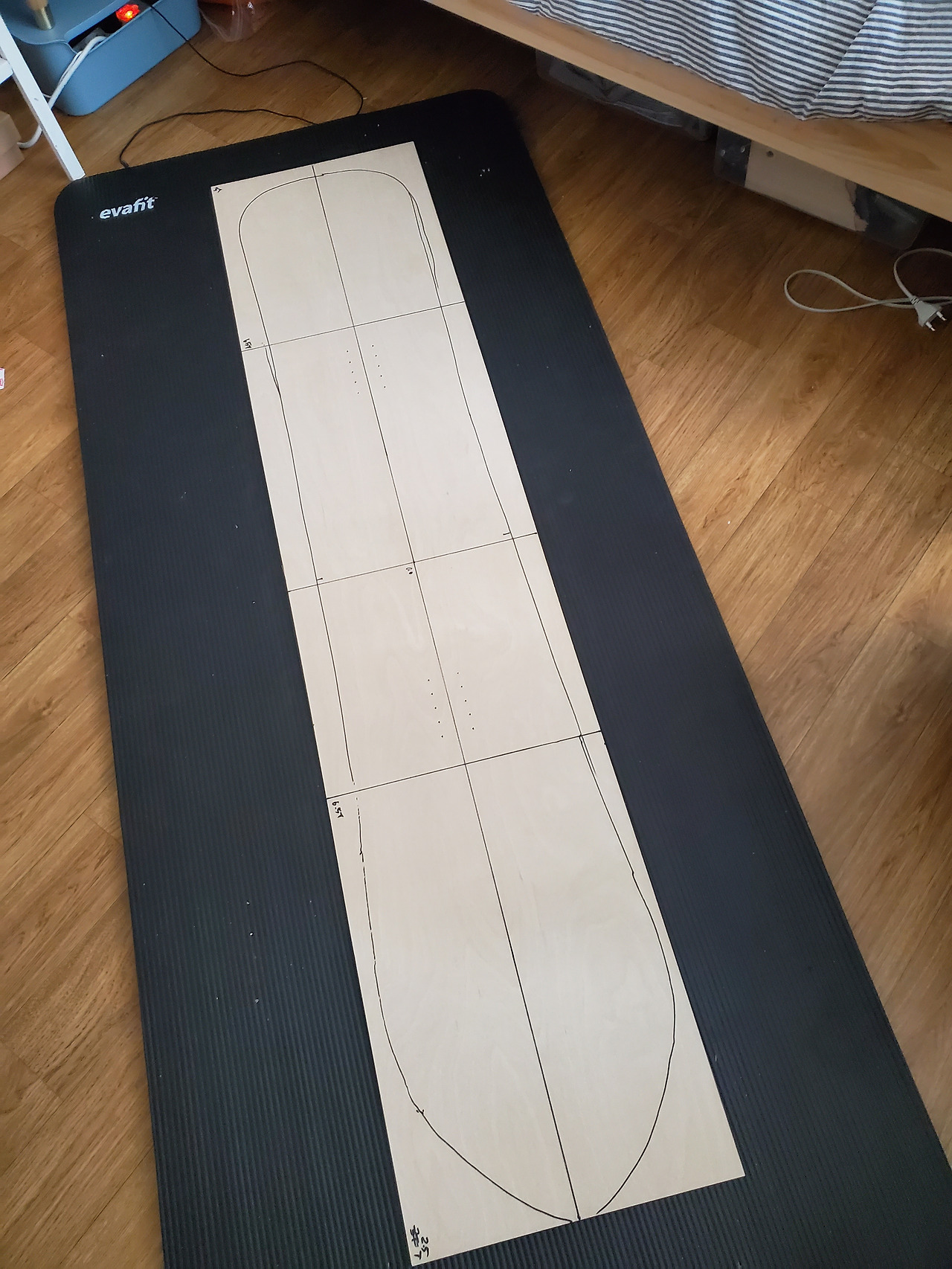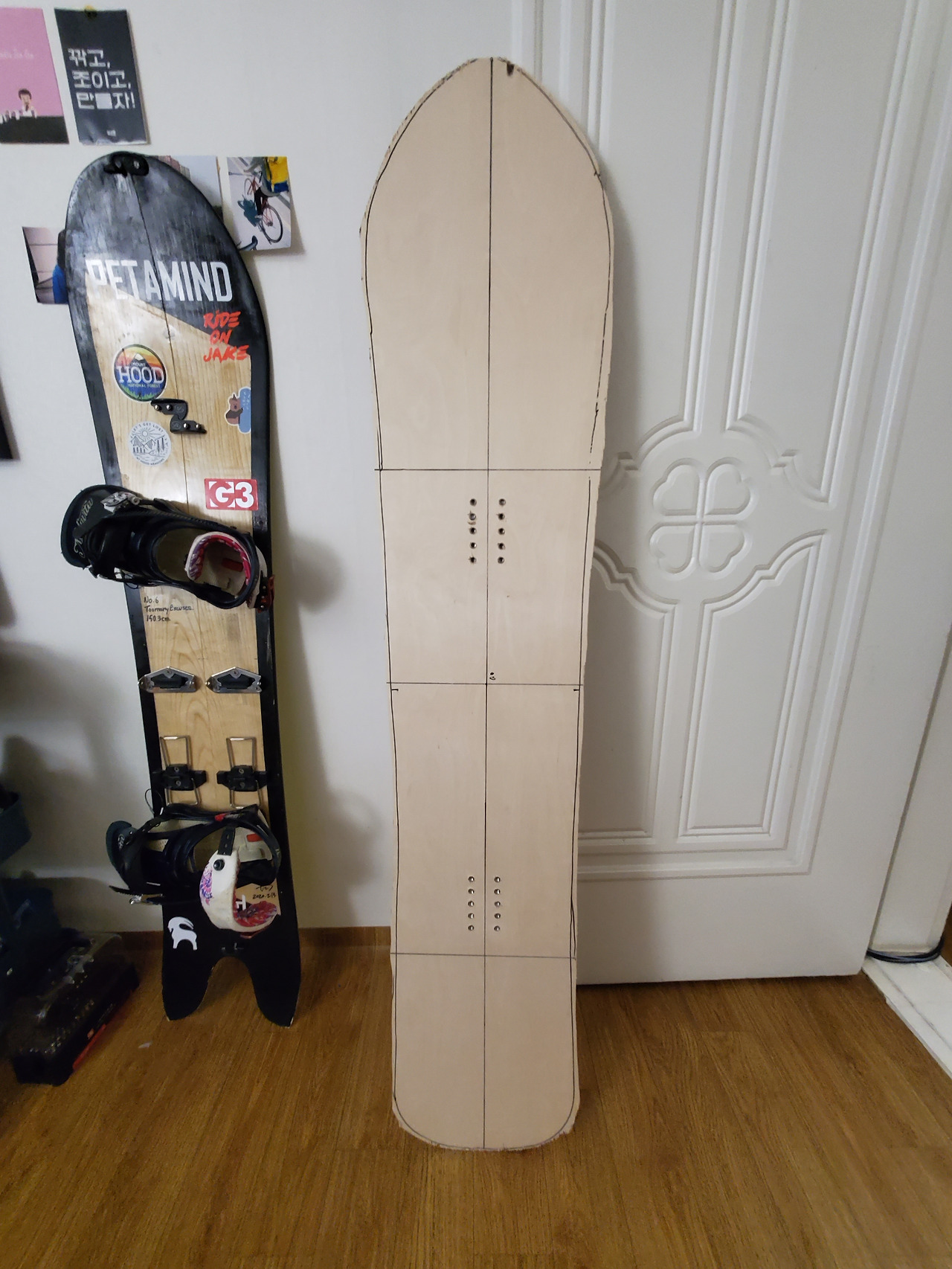 작업 중에는 크라임씬을 정주행 한다. 볼때마다 범인을 틀린다...이제 합판 코어를 선택할 차례인데, 창고파먹기 컨셉에 걸맞게 사이드월을 날려버렸다. (가공하다 실수로 노즈쪽 코어를 날려먹어서 그부분은 어쩔 수 없이 남은 베이스 재료로 팁필머티리얼을 채워주었다.) 어차피 강설에서 타는 것도 아니고, 파우더에서만 타는 보드...라는게 컨셉인데, 우레탄 바니쉬 (니스)로 마감을 해주면 좀 버틸 것이라는 예상이었다.