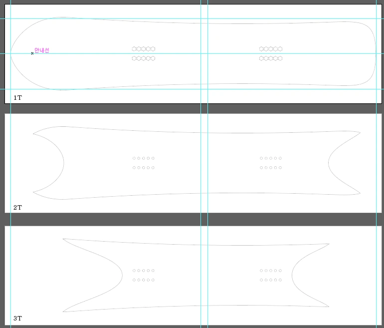 개인적으로 테크니컬 라이딩 쪽에는 취미가 없는 관계로 (겁이 많다. 속도 빠르고 경사가 세면 무섭다) 해머 데크를 별로 선호하는 취향은 아니었다. 그럼 사이드컷의 R값을 좀 크게 줘봐야겠다는 생각이 들었다. 마치 해머 데크 같은 세팅 값을 가지지만 사실 파우더 보드. 라는 느낌으로 컨셉을 정했다.