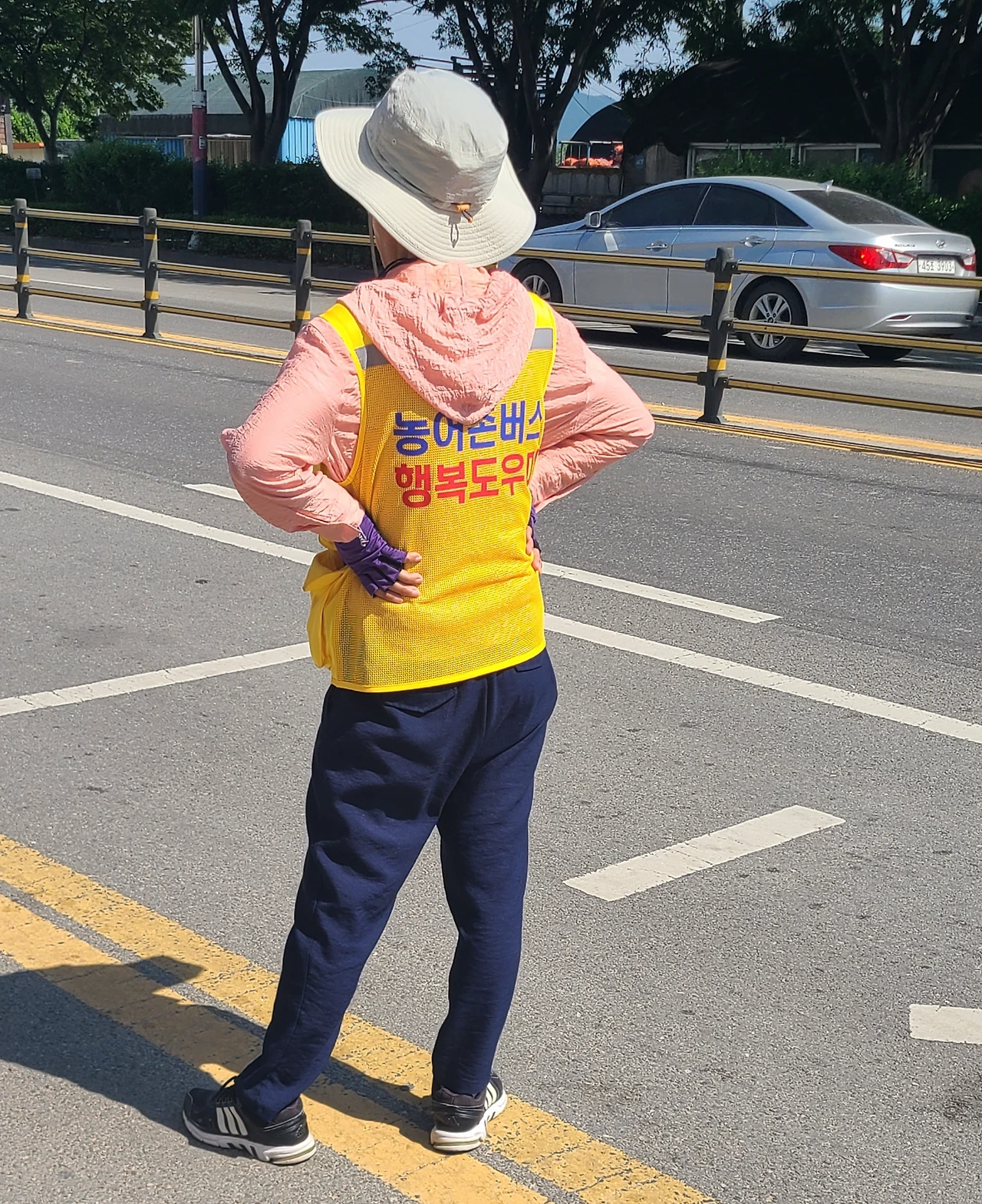 노란 조끼 여인이 소리치자 버스정류장 안에 있던 어르신들이 하나둘씩 일어서서 움직이기 시작했다. 거동이 편치 않은 분들이라 버스승강장까지 가는데 한참이 걸렸다. 버스가 도착하자 어르신들은 앞문으로 오르기 시작했고 뒷문으로는 노란 조끼 여인이 어르신들의 짐보따리를 싣기 시작했다. 노란 조끼를 입은 또 한 분이 나타나서 앞문으로 버스에 오르는 어르신들을 부축했다.