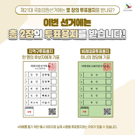 우리가 받는 투표용지는 2장이잖아. 근데 그게... 지역구 의원은 알겠는데,