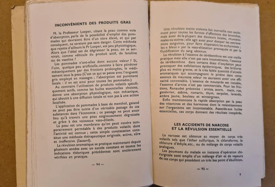 책의 구성 역시 이러한 그의 의도를 명확히 보여준다. 《아로마테라피》는 단순히 에센셜 오일의 효능을 나열하는 데 그치지 않았다. 책은 에센셜 오일의 역사적 사용에 대한 고찰로 시작하여, 화학적 구조에 따른 체계적인 분류, 각 오일의 독성 연구, 항독성 작용에 대한 실험 결과, 그리고 전쟁터와 병원에서 협력 의사들이 제공한 수십 건의 상세한 임상 사례 연구들로 이어진다.