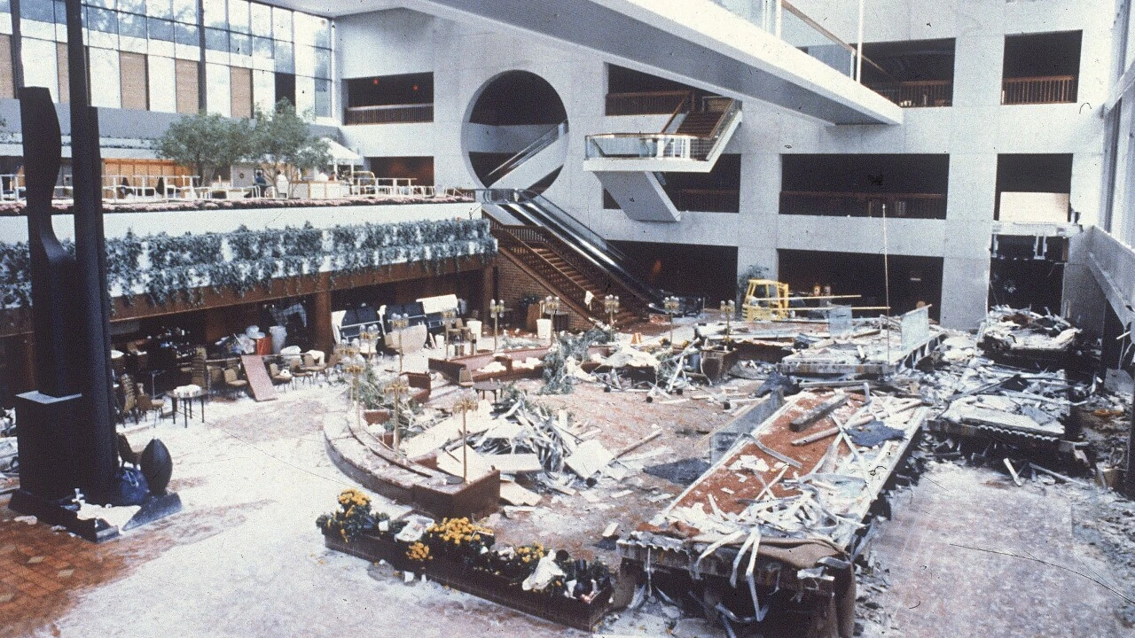 사고 당시 4층의 스카이워크가 먼저 붕괴했고, 그 하중이 2층 스카이워크에 전이되며 연쇄적으로 두 다리가 무너졌다. 잔해는 수십 톤에 달했으며, 아래층에서 춤을 추던 많은 사람들을 덮쳤다. 구조 작업은 14시간 이상 이어졌지만, 잔해 속에서 수많은 사람들이 희생되었다. 이 사고는 단순히 설계 결함의 문제가 아니라, 설계와 시공 과정에서 책임 소재가 모호했고, 안전보다 비용과 편리성이 우선시 된 시스템적 문제를 적나라하게 드러냈다.