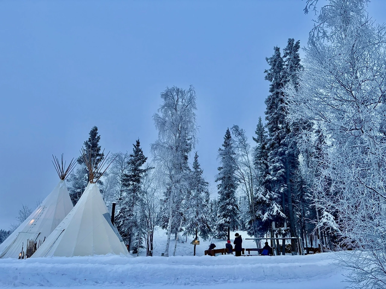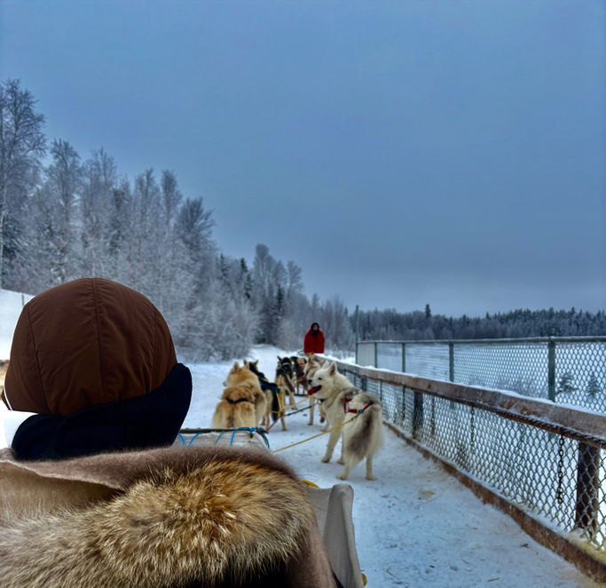 옐로나이프 3박 4일 일정 중 첫 일정은 바로 개썰매를 타는 것이었다. 피곤 덕분에 숙면을 취한 우리는 투어 업체에서 준비해 준 방한화와 캐나다구스로 중무장한 뒤 투어 업체 버스에 올라탔고 꽤 긴 시간을 달려 오로라 빌리지에 도착할 수 있었다.