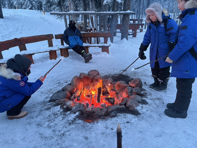 목적은 개썰매였지만 그걸 차치하고서도 오로라 빌리지의 풍경은 지금까지도 내게 소중하게 남아있다. 마시멜로우를 잘 굽지 못하는 나를 보며 웃음을 터트리던 빌리지의 직원과 우리처럼 함께 여행을 온 일본인 관광객들. 엉덩이가 깨질 뻔했던 튜브 미끄럼틀과 우리의 미끄럼틀이 잘 내려갈 수 있도록 뒤에서 밀어주었던 외국인. 맛집을 물어보는 우리의 질문에 친절하게 대답을 해주던 가이드와 긴 나뭇가지에 마시멜로우를 구워 먹었던 기억까지. 그곳에서는 평범한 일상이 내겐 모두 동화처럼 다가왔다.