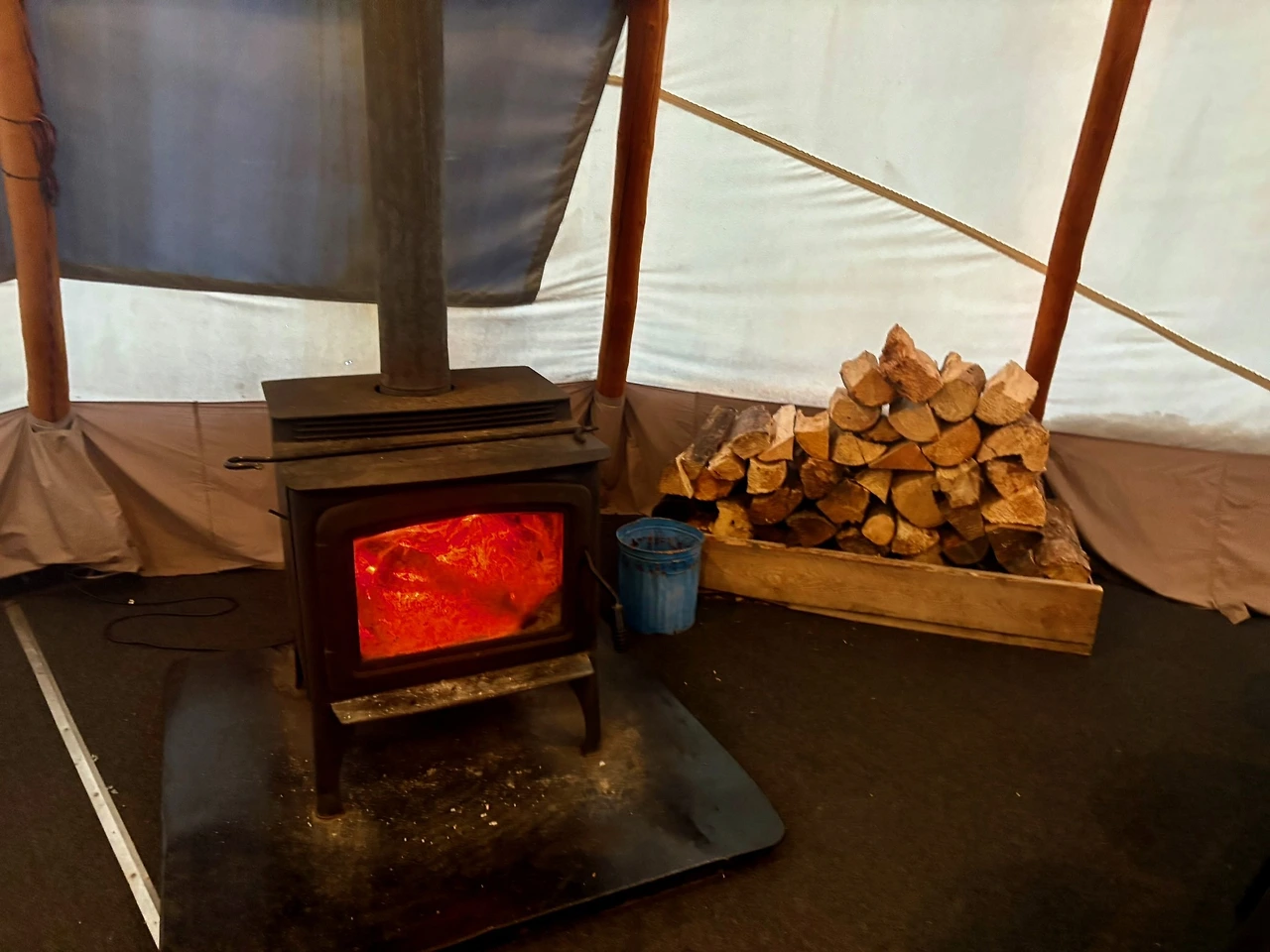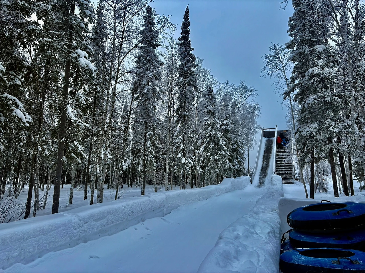 공간에는 개썰매 말고도 마시멜로우를 구워 먹을 수 있는 캠프파이어 스팟과 차를 끓이고 라면 등을 먹을 수 있는 천막 공간, 튜브를 타고 미끄럼틀을 탈 수 있는 액티비티도 마련되어 있었다.