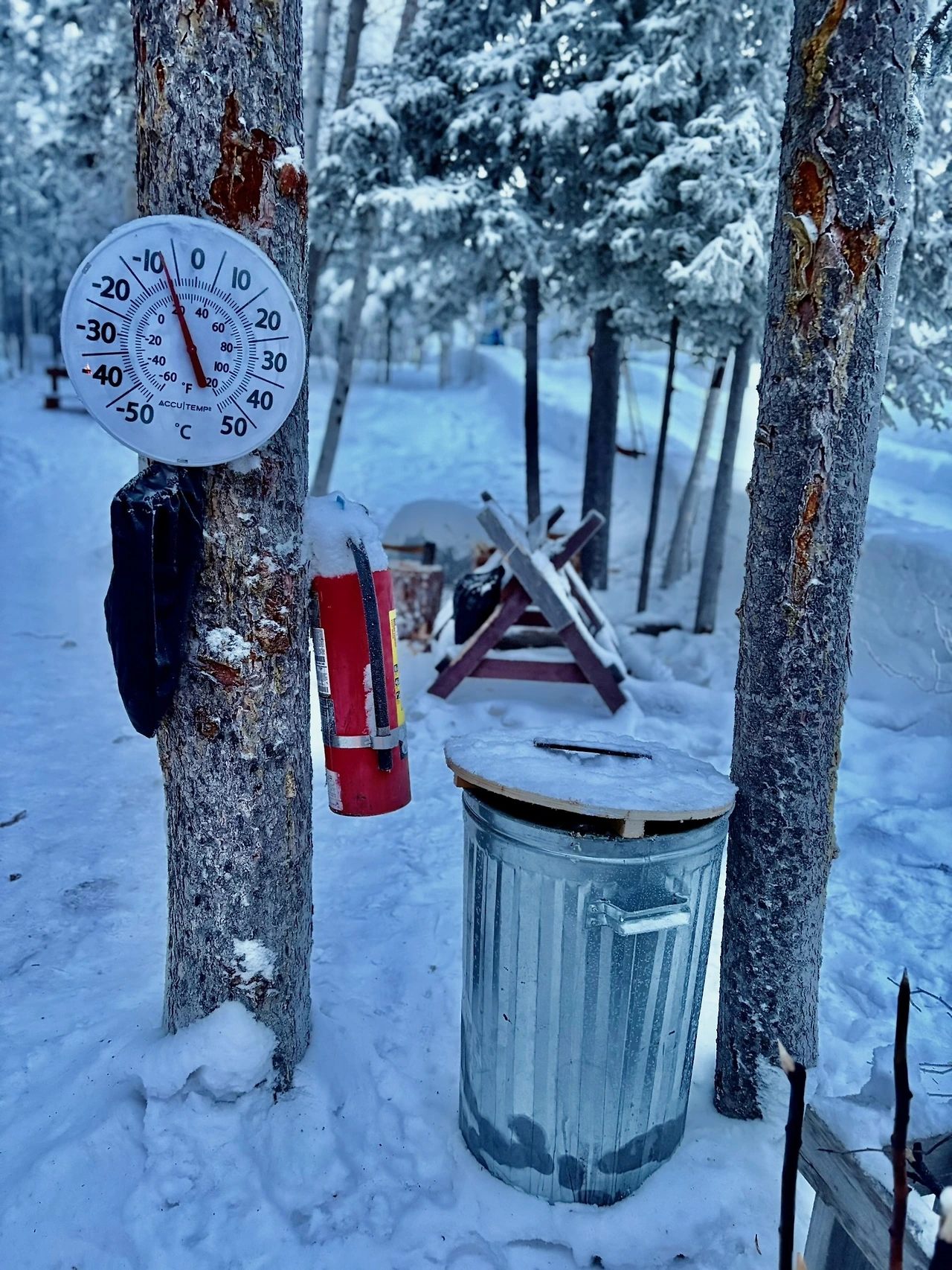 옐로나이프 겨울의 평년 온도는 영하 30도.