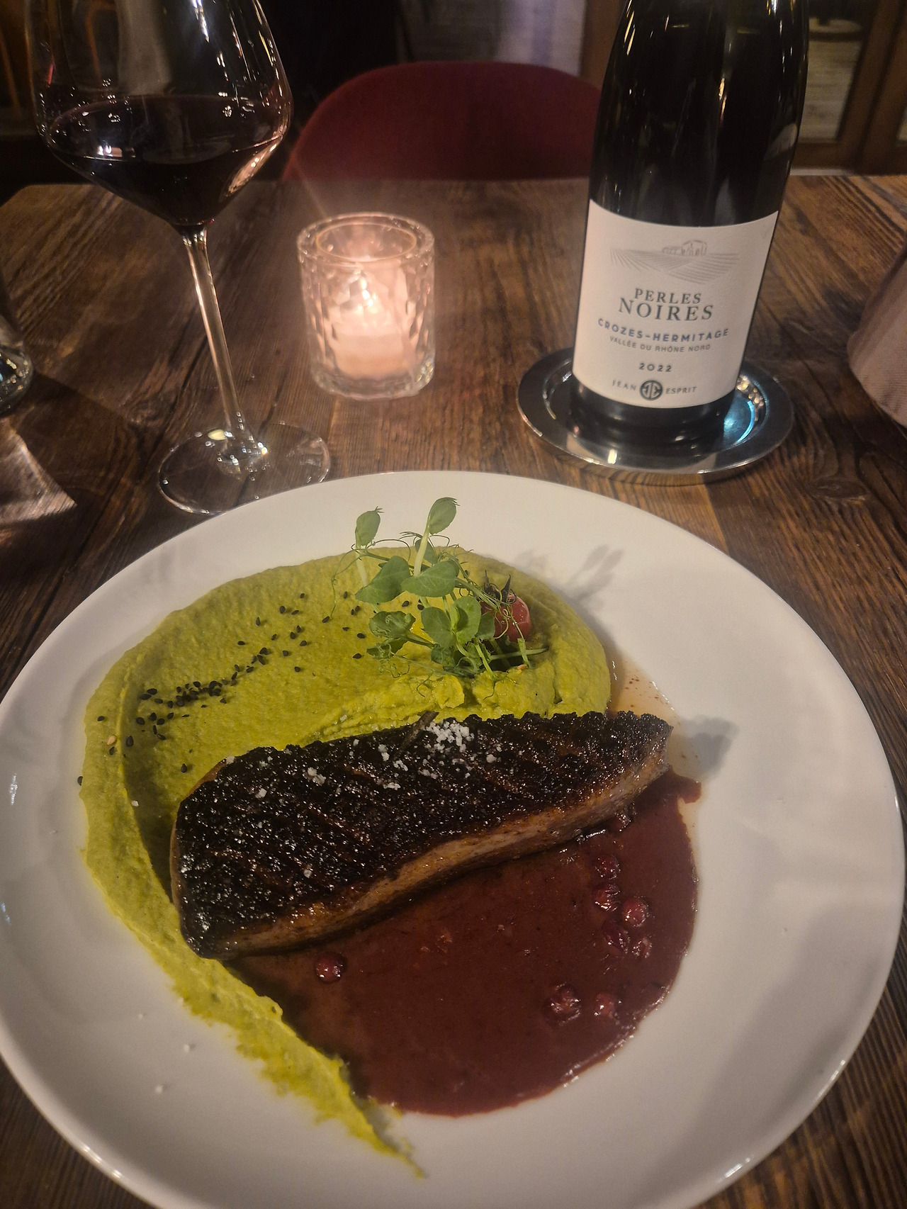 2022 Crozes-Hermitage “Perles Noires”는 좀전의 글라스와인들과 확연하게 비교되는 묵직함이 있다. 블랙베리류의 달콤한 향과 후추의 스파이시함이 느껴졌다.