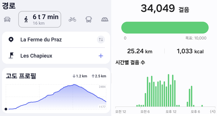 그들도 몽블랑 트레킹 중이었고, 오늘 나와 목적지가 같아 같이 가자고 제안했다. 캠핑을 준비해 온 이들은 오늘 르사피유에서 캠핑할 계획이란다.