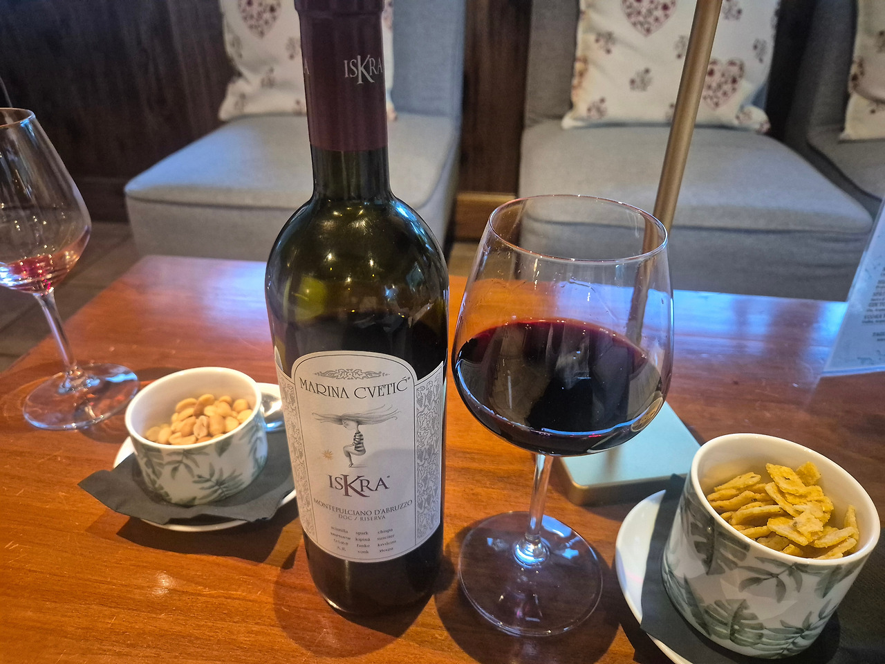 6시부터 주류 주문이 가능하다. 바에 가서 와인리스트를 물었다. 바텐더가 글라스로 판매하는 와인을 테이스팅 해줬는데, 영 아니다. 라이트바디에 저렴한 단맛. 그거밖에 없다길래 그냥 한잔 시켜서 자리에 왔다.