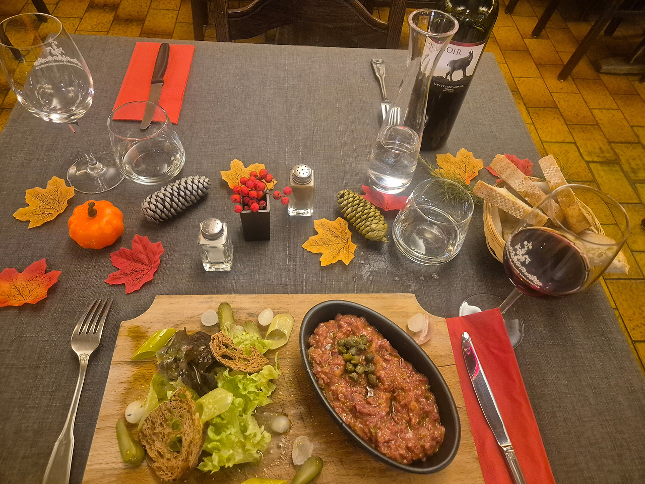 비프타르타르는 아주 쨍한 타바스코 맛이었다. 시큼새큼 짜고 강렬한 매운맛에 고기 본연의 향도, 함께 시킨 레드 와인의 향도 완전히 묻혔다. 오늘 저녁은 실패다.