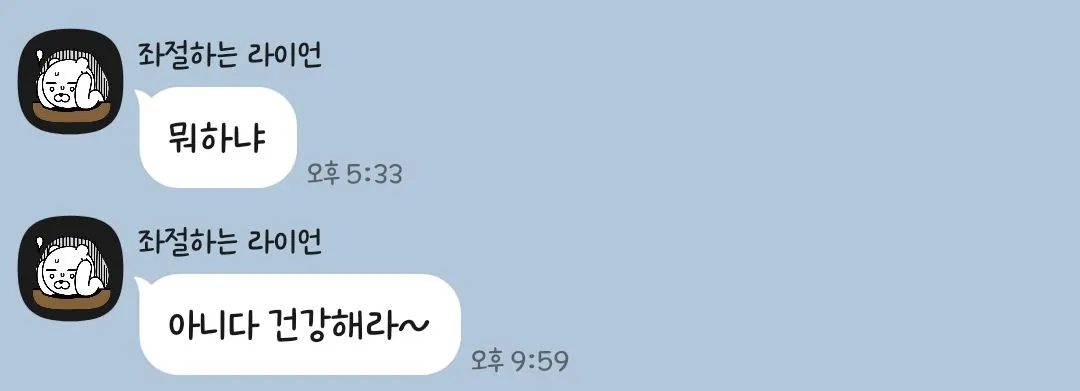 방금 온 카톡이 그런 카톡이냐고? 응... 앞도 뒤도 없이 딱, 한마디.
