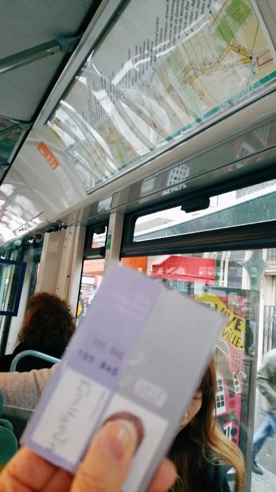 답답한 사람이 우물을 찾는다고 증명사진 한 장과 보증금 5유로, 충전금을 건네고 뭔가 입장이 바뀐 것 같지만 최대한 상냥한 표정으로 그녀를 향해 미소 지어봅니다. 고분고분하게 기다린 탓(?)인지 무사히 저의 이름으로 된 교통카드가 만들어졌습니다. 이게 또 뭐라고 신기하고 좋은지. 그녀의 불친절은 금세 잊혔고, 위풍당당하게 나비고를 들고 파리 버스에 올랐습니다. 오, 교통카드를 찍는 손맛(?) 아주 좋더라고요.