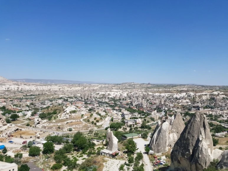 열기구 투어를 하면 파일럿이 올라갔다 내려갔다 운항(?)을 해주는데, 그때마다 손에 닿을 것 같은 착각 속에 본 곳이 우치하사르입니다. 제 눈에는 바위 아파트처럼 보였는데, 실제로 거주할 수도 있을 뿐 아니라 심지어 외국인도 사고파는 거래를 할 수 있는 집이라고 합니다. 언뜻 납득은 잘 안 되더라고요? 이렇게 자연이 만들어내고 인간이 지켜낸 역사적인 의미를 갖는 관광 명소가 개인들의 집으로 인정받고 거래가 된다는 사실이. 그리고 엄청 비쌀 줄 알았는데 가이드 말을 들어보니 생각보다 비싸진 않았습니다. 사실 거주하기에는 수도, 냉난방, 욕실, 화장 실 등에서 불편한 점이 많고, 거주 목적이 아닌 보유 목적으로 건물을 사기에는 그 가치가 큰 편이 아닌지 거래가 많이 이루어지는 것 같지는 않았어요. 때문에 우치하사르에는 카파도키아 사람들이 거주하면서 관광객들을 대상으로 하는 일을 생업 수단으로 삼는 것이 일반적이라고 합니다. 그래서 호텔이나 카페, 레스토랑 등으로 개조된 건물들이 눈에 띄었습니다. 물론 하늘에서 보았지요 ^^ 시간이 허락된다면 저런 곳에서 커피 한 잔 마셔보면 참 좋았을 텐데...
