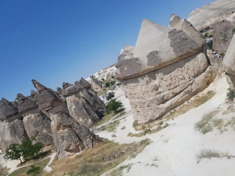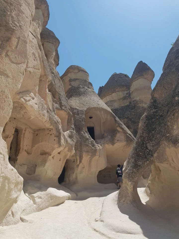300만 년 전 화산 폭발 후 화산재에 덮여 굳어진 땅 위에 용암이 쌓였고, 이후 풍화와 침식을 거쳐 지금의 모습이 되었다는데요. 후에 그리스도교도들은 종교적 박해를 피해 이곳 버섯 바위에 집을 짓고, 교회를 만들어서 신앙생활을 했다고 합니다. 사진으로 보고, 말로만 듣다가 실제로 보니까 진짜 신기하더라고요. 자연이 만들었다기에는 너무 정교하고, 신비롭고, 아름다운 모습이기도 했고, 바위 안에 실제로 사람들이 살았다는 사실도 놀라웠습니다. 직접 들어가 볼 수도 있는데 밖은 진짜 40도를 육박하는 열기로 진짜 너무 더운 반면 버섯 바위 안은 정말 시원했습니다.
