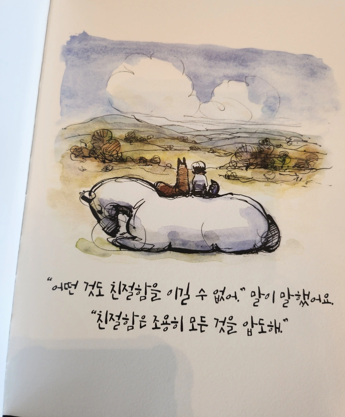 길 위에서, 우리는 자유해졌고, 서로에 대한 애틋한 마음을 회복해 가고 있었다. 조금 더 친해져서 돌아왔기에, 자신이 사랑하는 삶의 가치에 대해 보다 명료하게 서로에게 말해주게 되었다. 수수는 정말 많이 울고, 울음을 그치지 않는 아이다. “사랑해 수수야. 언니에게만 엄마가 마음이 늘 바쁜 건 아니야. 네가 울어야지만 엄마가 너를 돌아봐주는 게 아니라, 너가 너임을 증명하지 않아도, 엄마는 수수 너가 소중해. 아무 이유 없이도 너는 사랑받아 마땅해”라고. 더 많이 말해주어야 하는 일이었음을 알게 됐다.