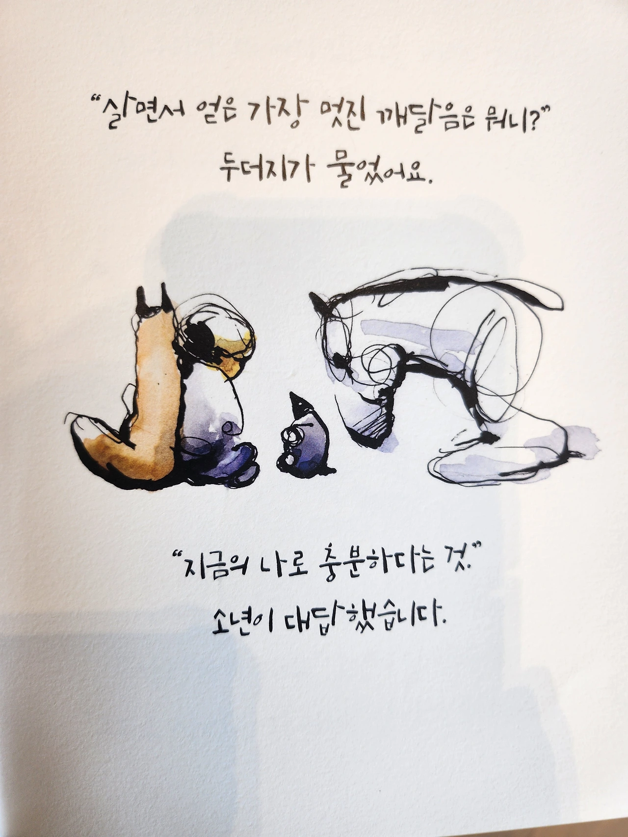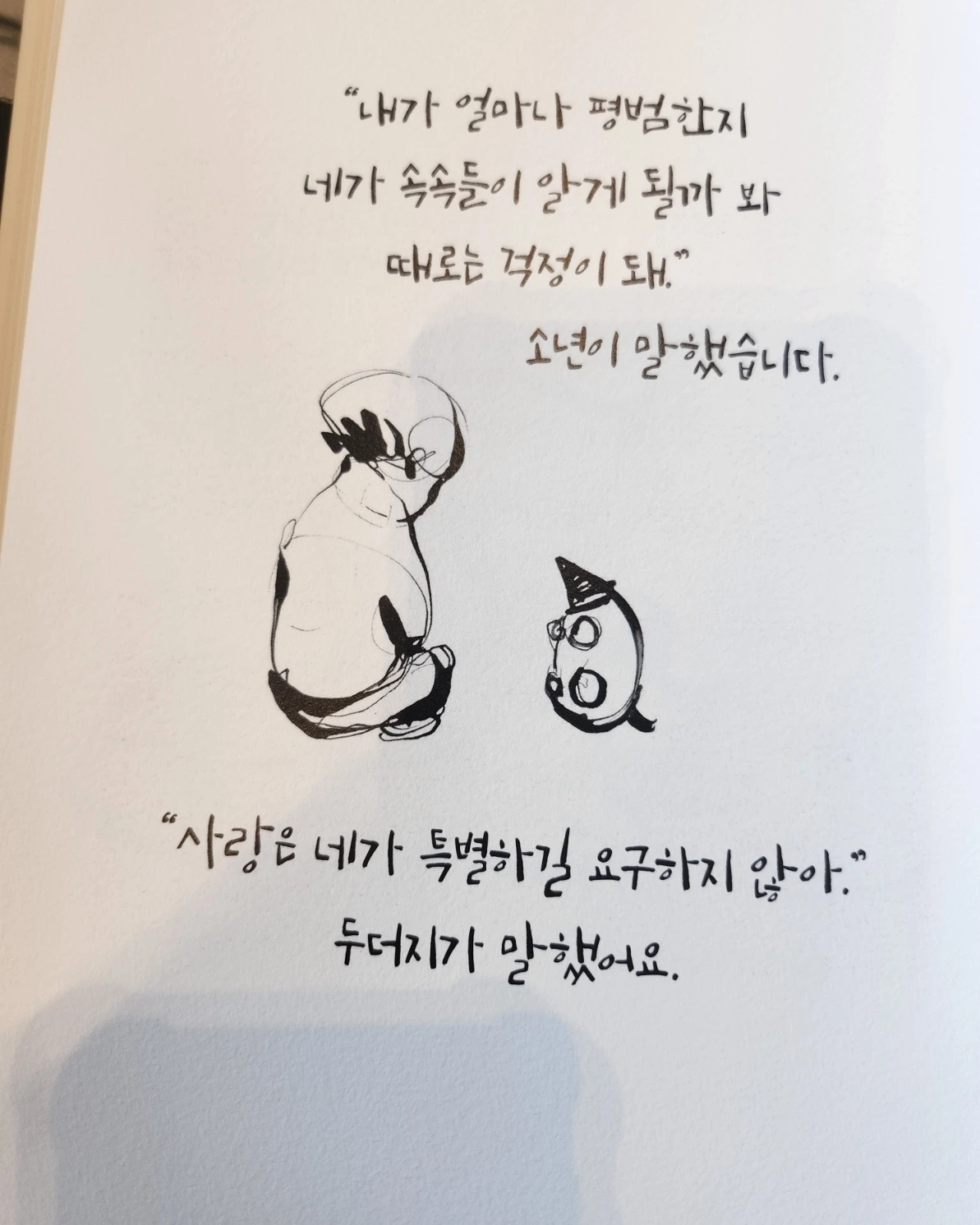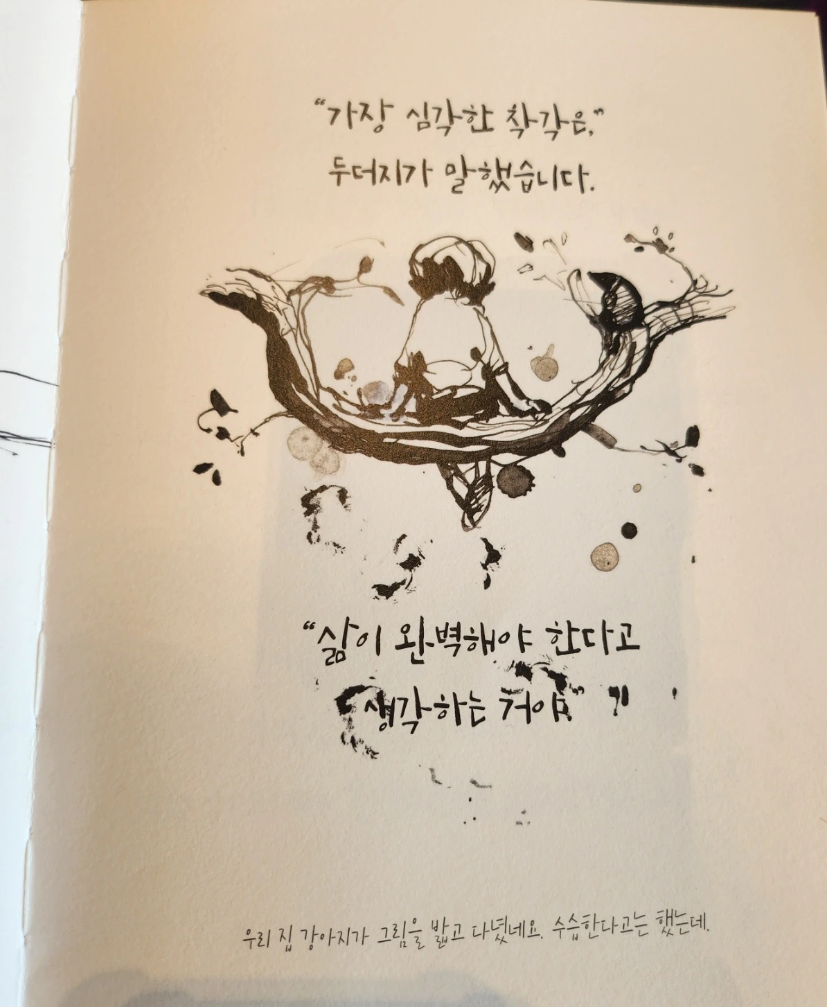 “아빠는 2045년에 나랑 미국 간대. 2055년에 나랑 로마 가고. 지금은 안된대.” 너무나 사랑하는 아빠와 함께 여행할 수 없음에 아이들은 속상한 마음이 가득하지만, “아빠는 지금 바쁘게 일을 하는 게 마음이 편한 시절을 살고 있으니, 그러라고 하자. 그게 아빠가 우리를 사랑하는 방식이라고 믿자. 그게 우리 마음에도 좋은 일이니까.”라고 나는 대답해 주었다. 세상에 없는 것을 있다고 여기며 사는 것만큼 끔찍한 일도 없을 것이다.
