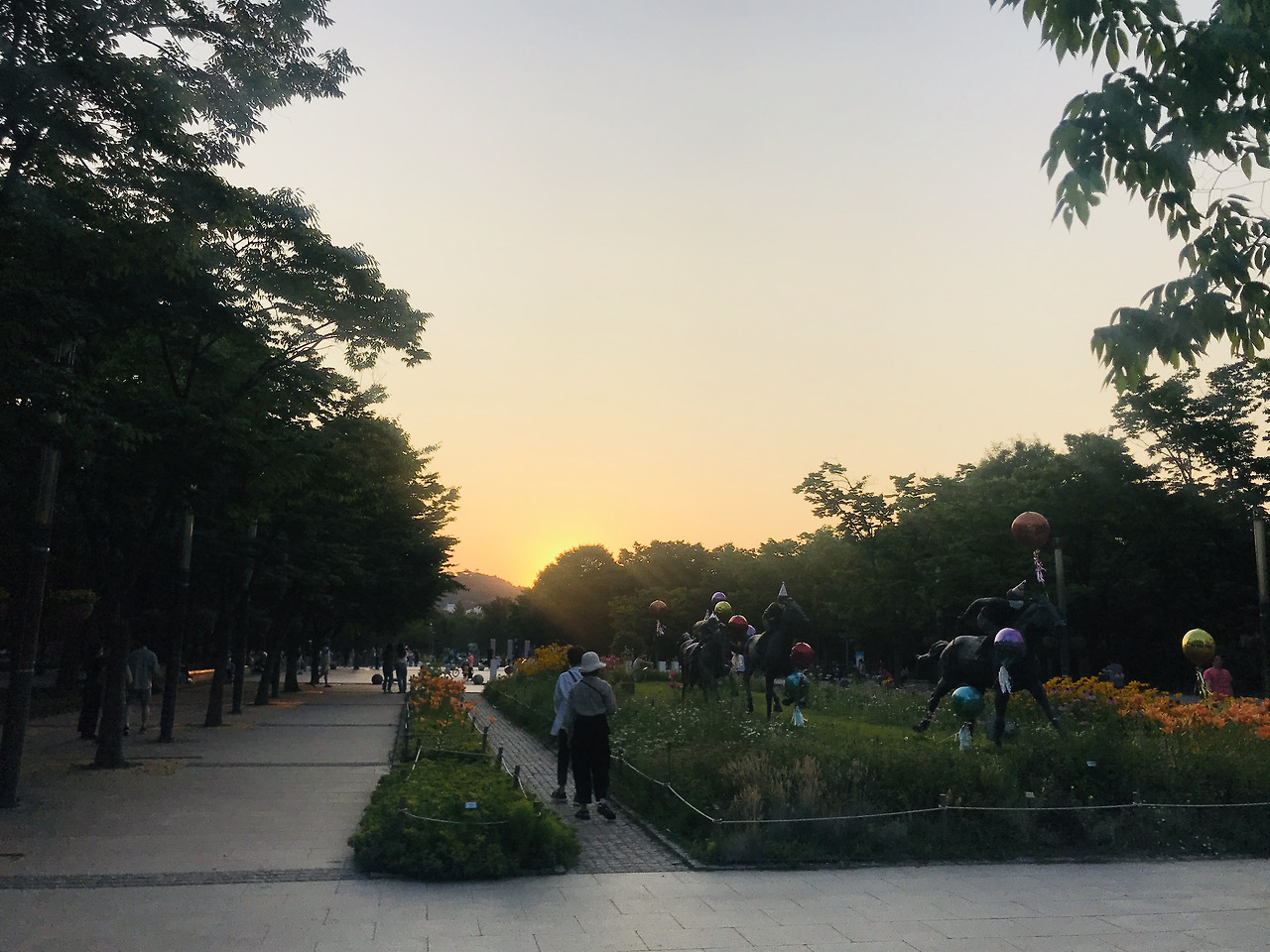 까눌레로 당을 충전하고 서울숲을 크게 한번 도는데, 넘 예쁜 수국이 한가득이었다. 색색별로 핀 수국들이 정말 아름다웠고, 중간중간, 전등불빛들이 초저녁 밤을 밝히고 있어서 동화 속에 들어온 듯한 느낌이 들었다.