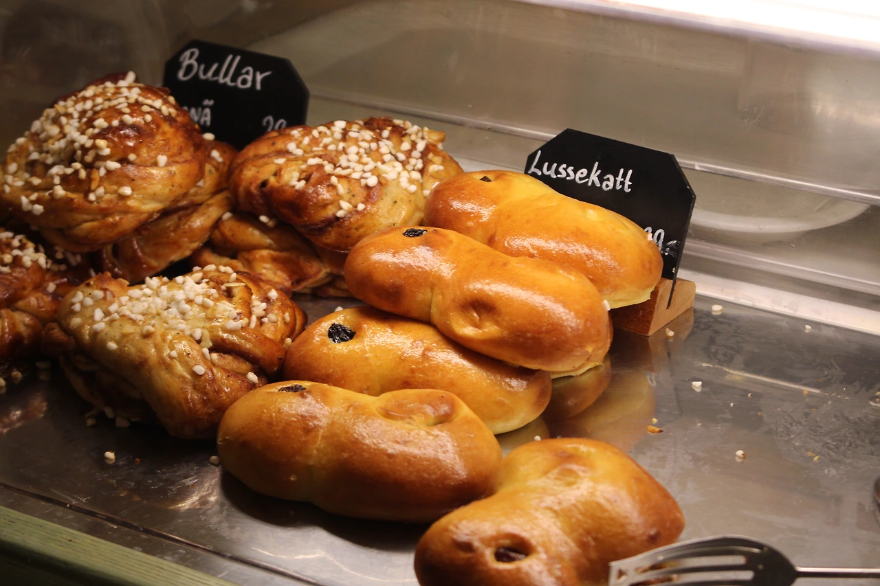 나는 스웨덴에서 빵을 먹을 때마다 '빵 맛이 거기서 거기겠지~'라는 생각을 하곤 하는데, 실제로는 우리나라에서 먹는 빵과 다른 향들이 많이 나는 경우가 많았다. 위의 우측에 있는 사진은 내가 먹은 Lussekatter와 크림 케이크이다. 두 빵 모두 스웨덴만의 특이한 향이 났다. 나는 베이킹을 잘 모르기 때문에.. 정확히는 잘 모르지만, 아마도 그 향은 우리나라에서는 잘 쓰지 않는 향신료인 'cardamom'과 '샤프란' 때문인 것 같다. 뭔가 맛보다도 특이한 향으로 승부 보는 빵이라서 나에게는 조금 달지 않고 밋밋하다고 느껴지기도 하지만, 스웨덴 사람들은 그런 맛과 향을 즐기는 것 같다.