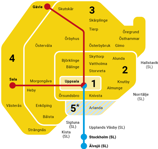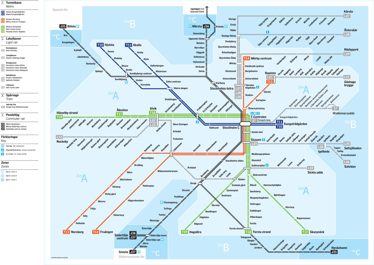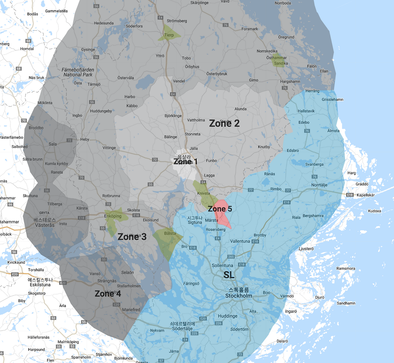 따라서 스톡홀름과 웁살라를 오갈 때 구매해야 하는 티켓은 SL(A+B+C Zone) + UL(1+2+5 Zone)이다.