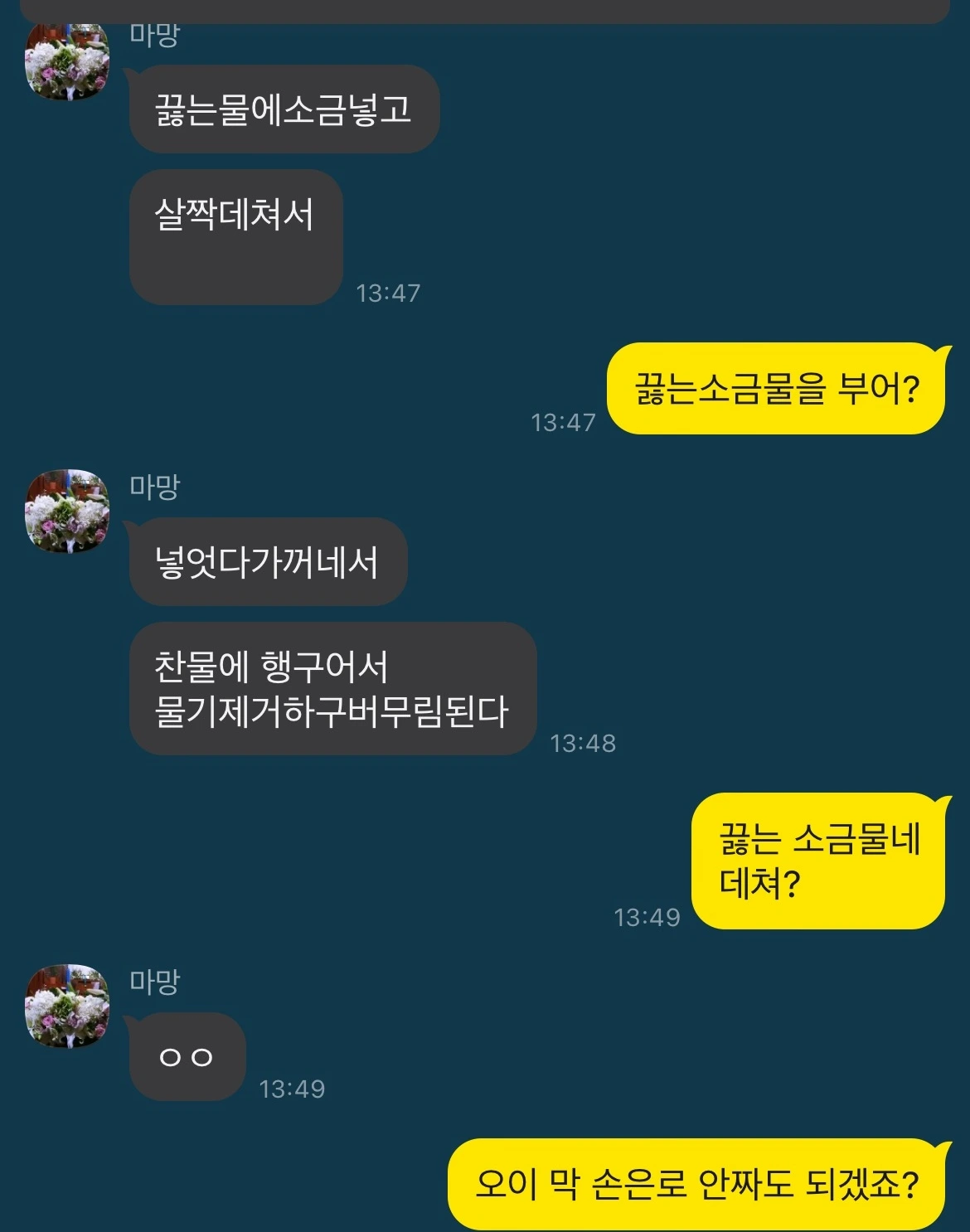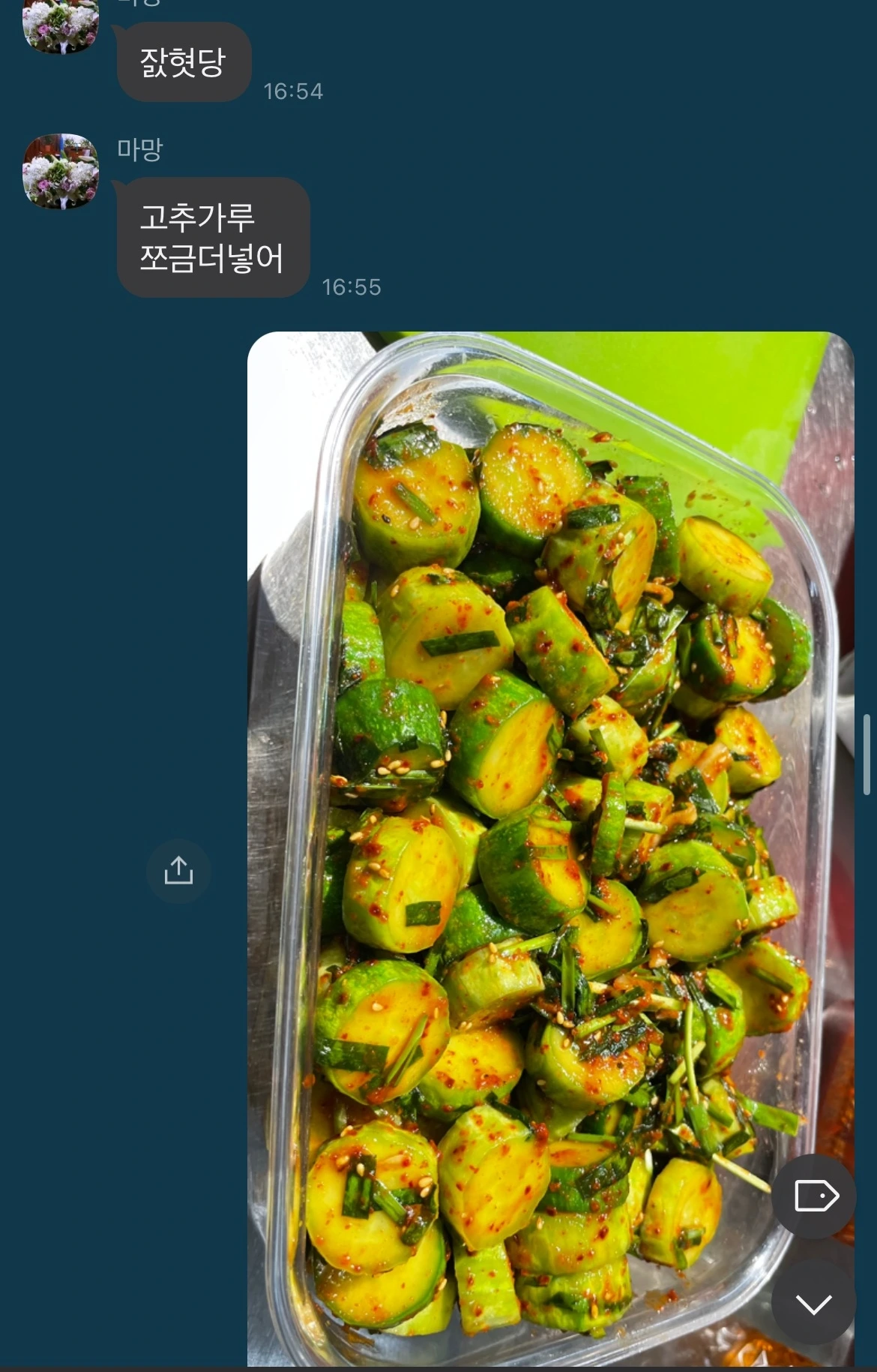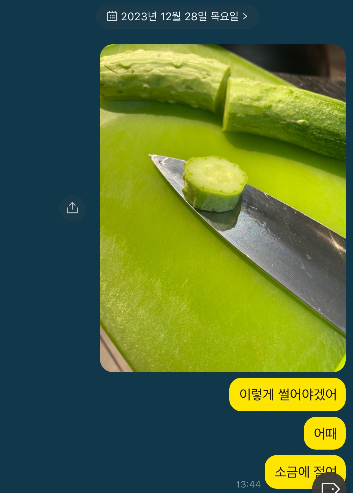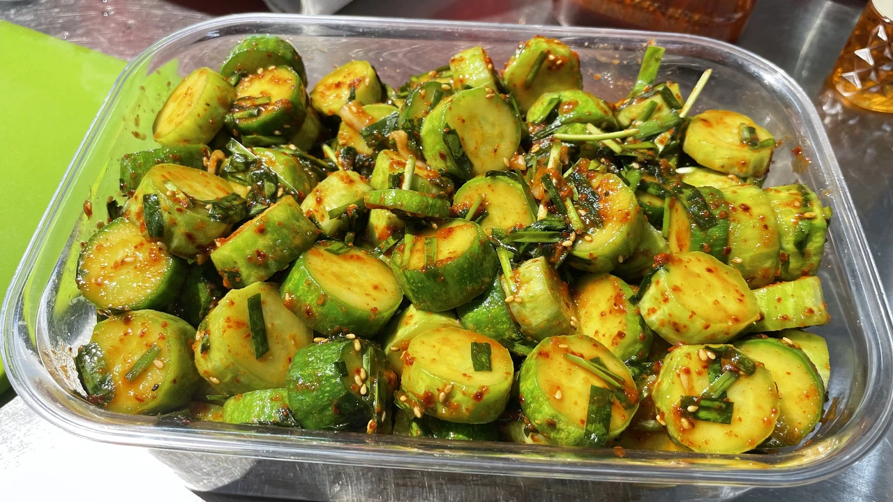 새로운 방법을 알려주셨어. 끓는 소금물에 오이를 데쳐서 쓰는 걸 새로 배웠다.