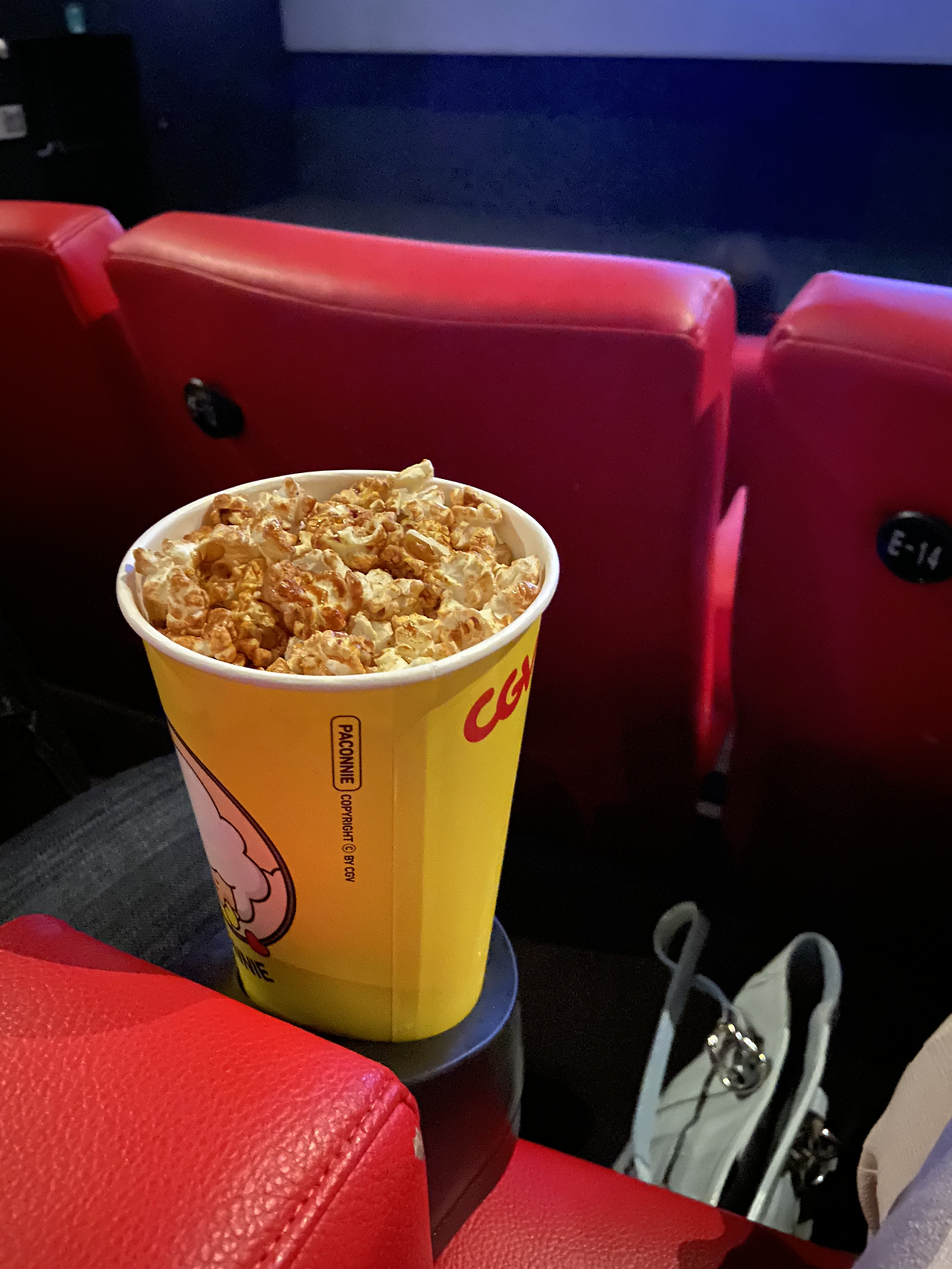 CGV 어플의 패스트오더로 팝콘 미리 시켜놓고 갔는데 안그랬으면 늦을뻔 했다. 특히 영화 시간 임박해서 가면 대기줄이 길어서 영화 시작하고 들어가기 쉽상이다. 다들 그간 팝콘 못먹어서 더 그리웠던건지 ㅎ