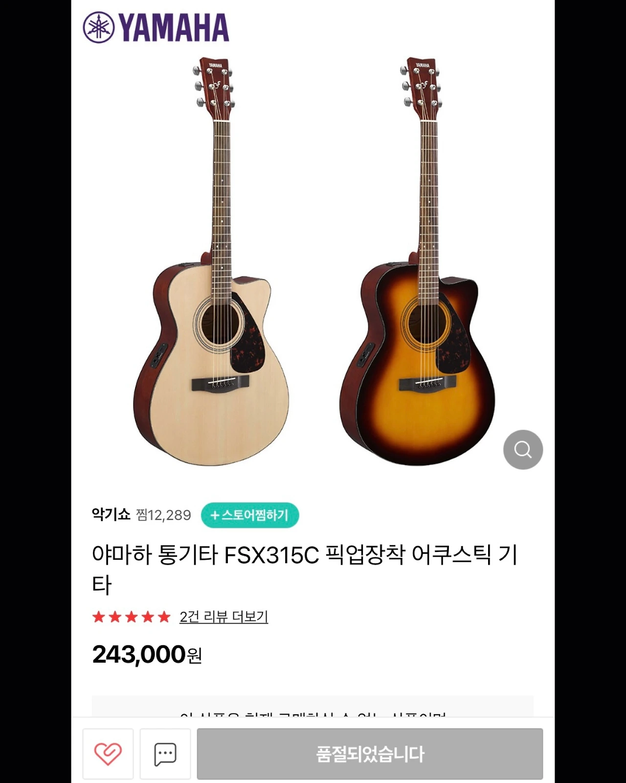 근데 지금 들어가보니 마지막 물건이었나보다. 품절이라고 뜸. 야마하 작은 사이즈, 픽업 장착 모델인데 왜 이렇게 구하기 힘든건지 모르겠지만 구해서 다행 ~