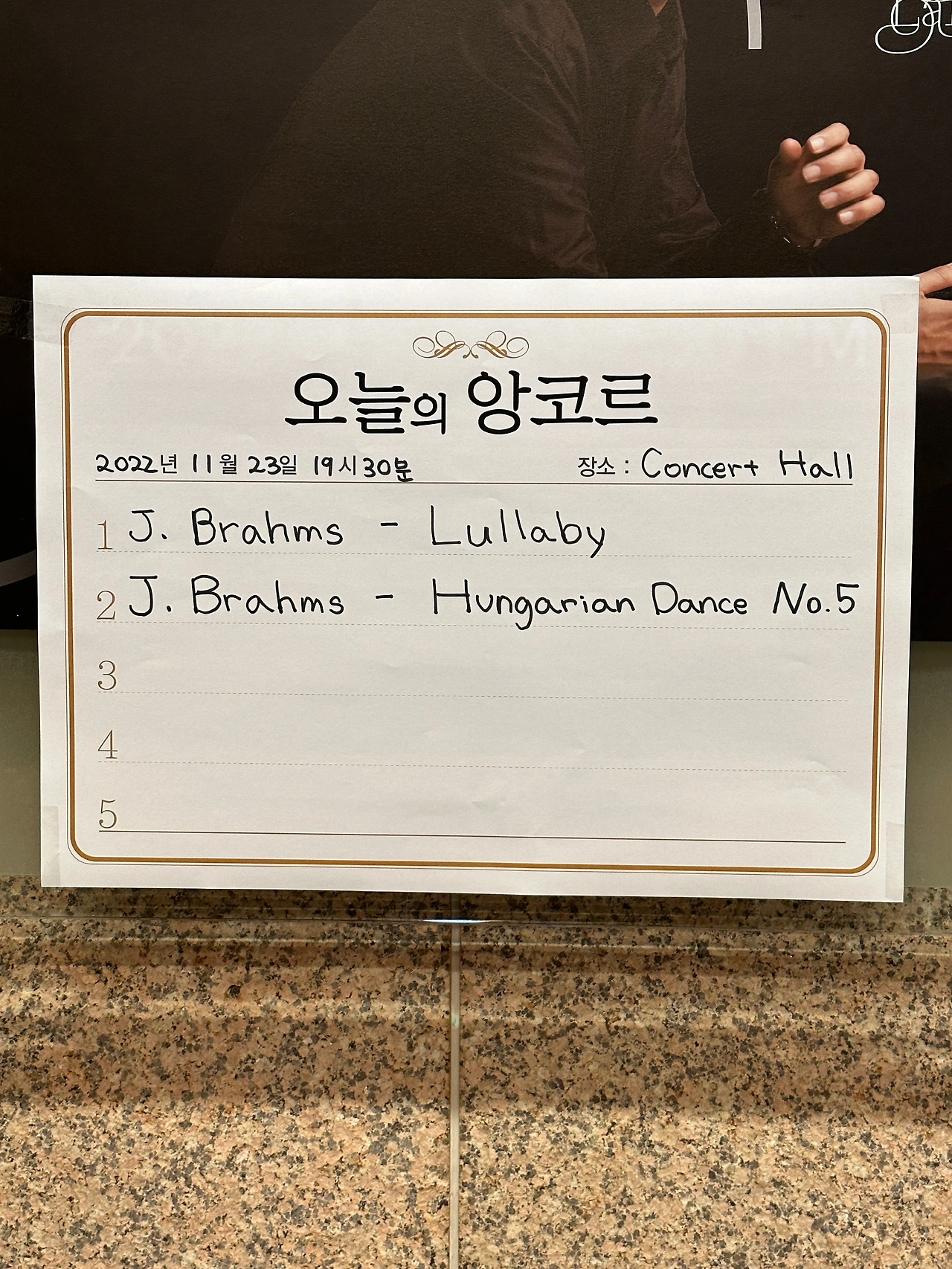 그렇게 끝나는 줄 알았는데 앵콜로 둘이 같이 들어와서 너무나 신났다!! 오늘 예권님 헤어 스타일은 상당히 낯설고 신기했는데 요즘 유행인가여 ㅋㅋ 둘이 너무 오붓하게 브람스 자장가와 헝가리 무곡 포핸즈로 연주.. 중간에 자리 바뀌었다고 피아노 의자 바꾸는 랑랑 너무 웃겼음 ㅋㅋ