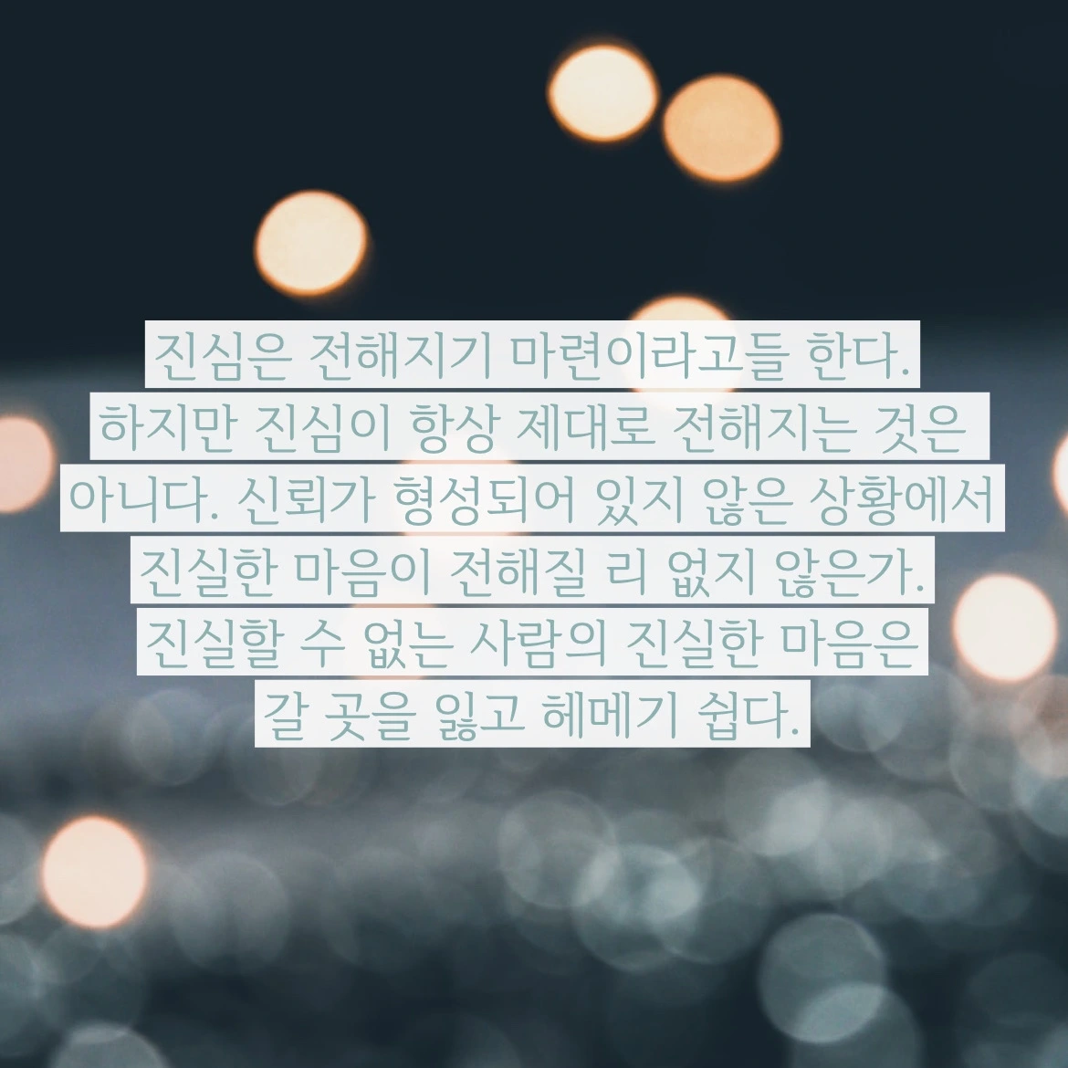 진심이 전해지려면 진실해져야 한다. 그렇지 않고 진실한 마음이 전해질 수 있는 방법이란 없다.