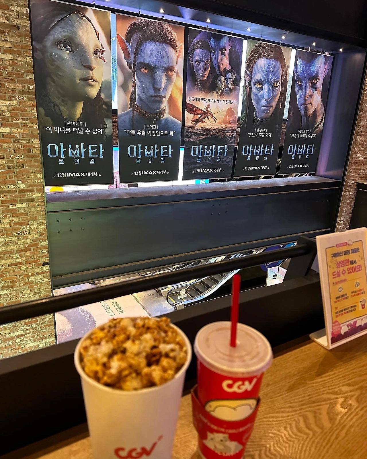 그런데 대충 평을 검색하다가 영상미 구현이 장난이 아니고, 물의 세계를 너무 잘 표현했고, 영화관이 존재하는 이유를 다시 한번 느낄 수 있었고, 꼭 3D 로 보라는 이야기들에 넘어갔다. 바로 CGV 용산 아이파크몰 3D 극장으로 고고.