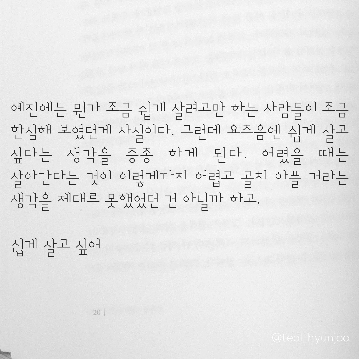 예전에는 뭔가 조금 쉽게 살려고만 하는 사람들이 조금 한심해 보였던게 사실이다. 그런데 요즈음엔 쉽게 살고 싶다는 생각을 종종 하게 된다. 어렸을 때는 살아간다는 것이 이렇게까지 어렵고 골치 아플 거라는 생각을 제대로 못했었던 건 아닐까 하고.