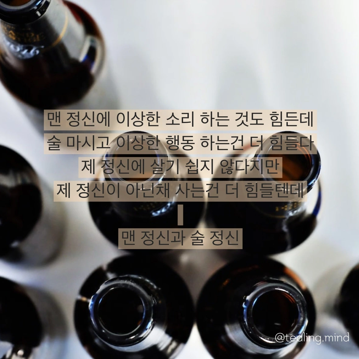 맨 정신에 이상한 소리 하는 것도 힘든데, 술 마시고 이상한 행동 하는건 더 힘들다. 제 정신에 살기 쉽지 않다지만, 제 정신이 아닌채 사는건 더 힘들텐데