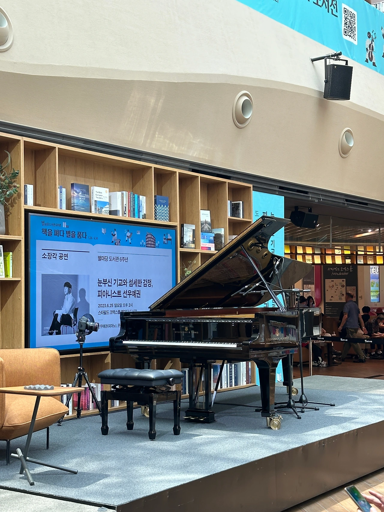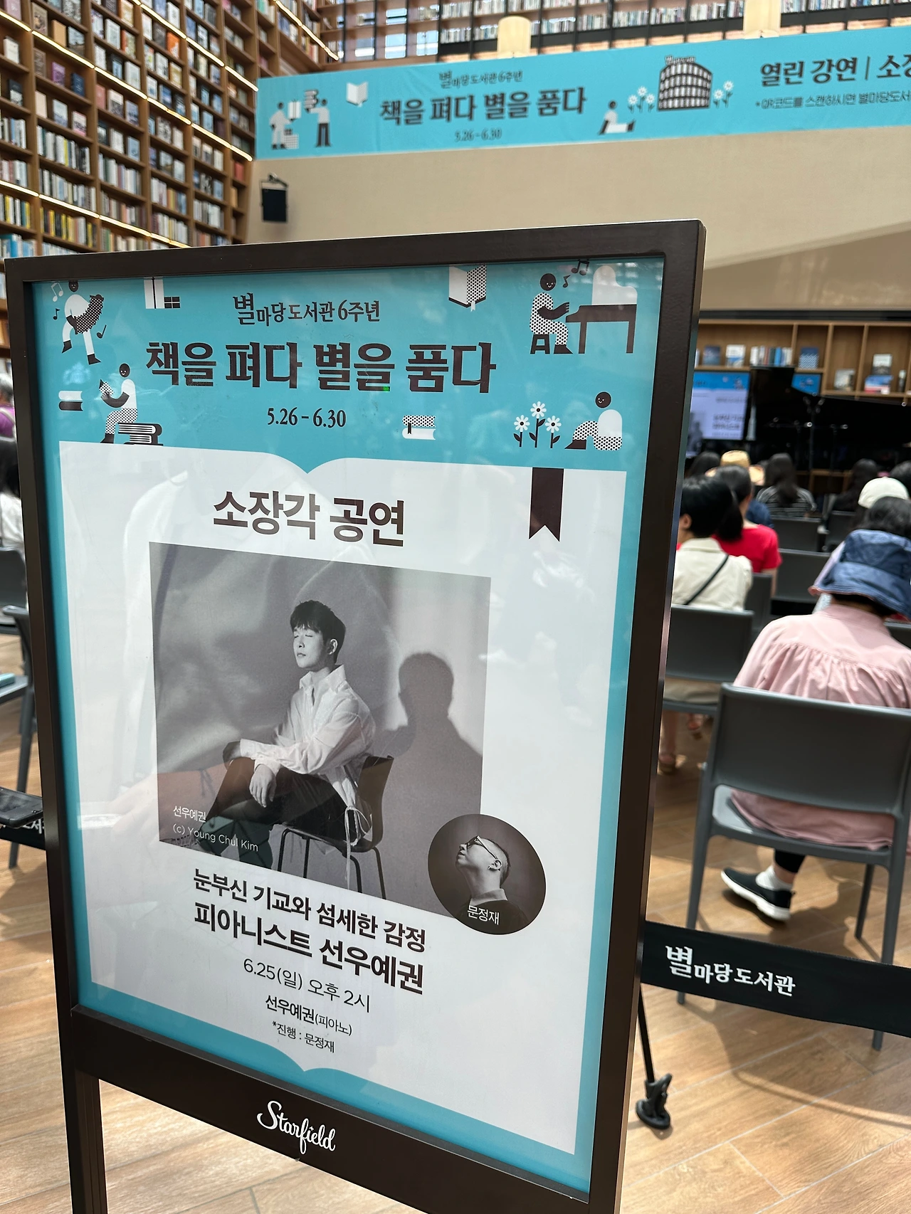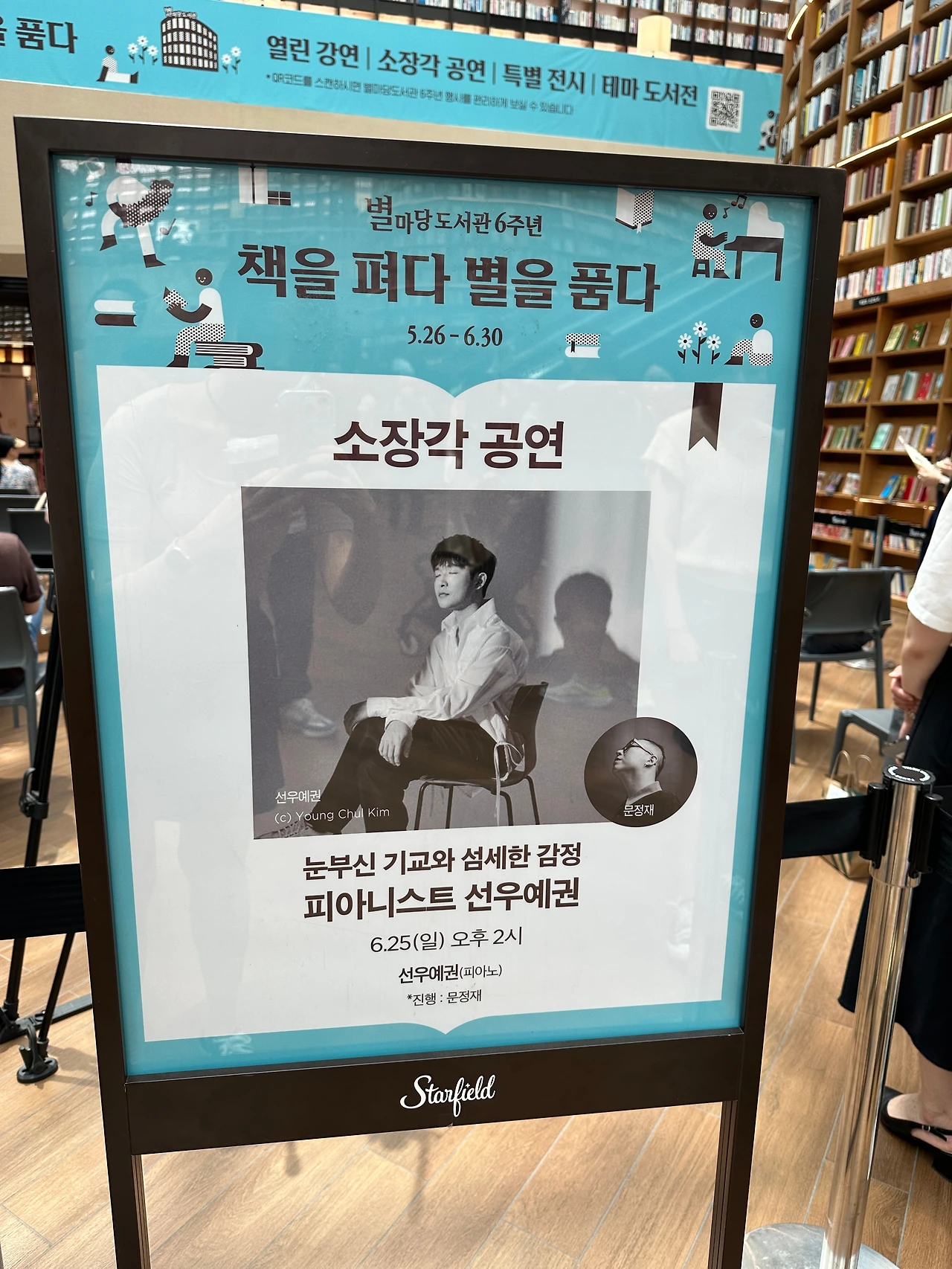 별마당에서 공연 보는 건 처음인데 예권님은 별마당은 처음 와보신다고. 약간 까페 같은 곳을 생각하신거 같기도 하다. 울림이 약간 아쉬웠지만 예권님의 소규모 공연이라니 흔치 않은 기회.