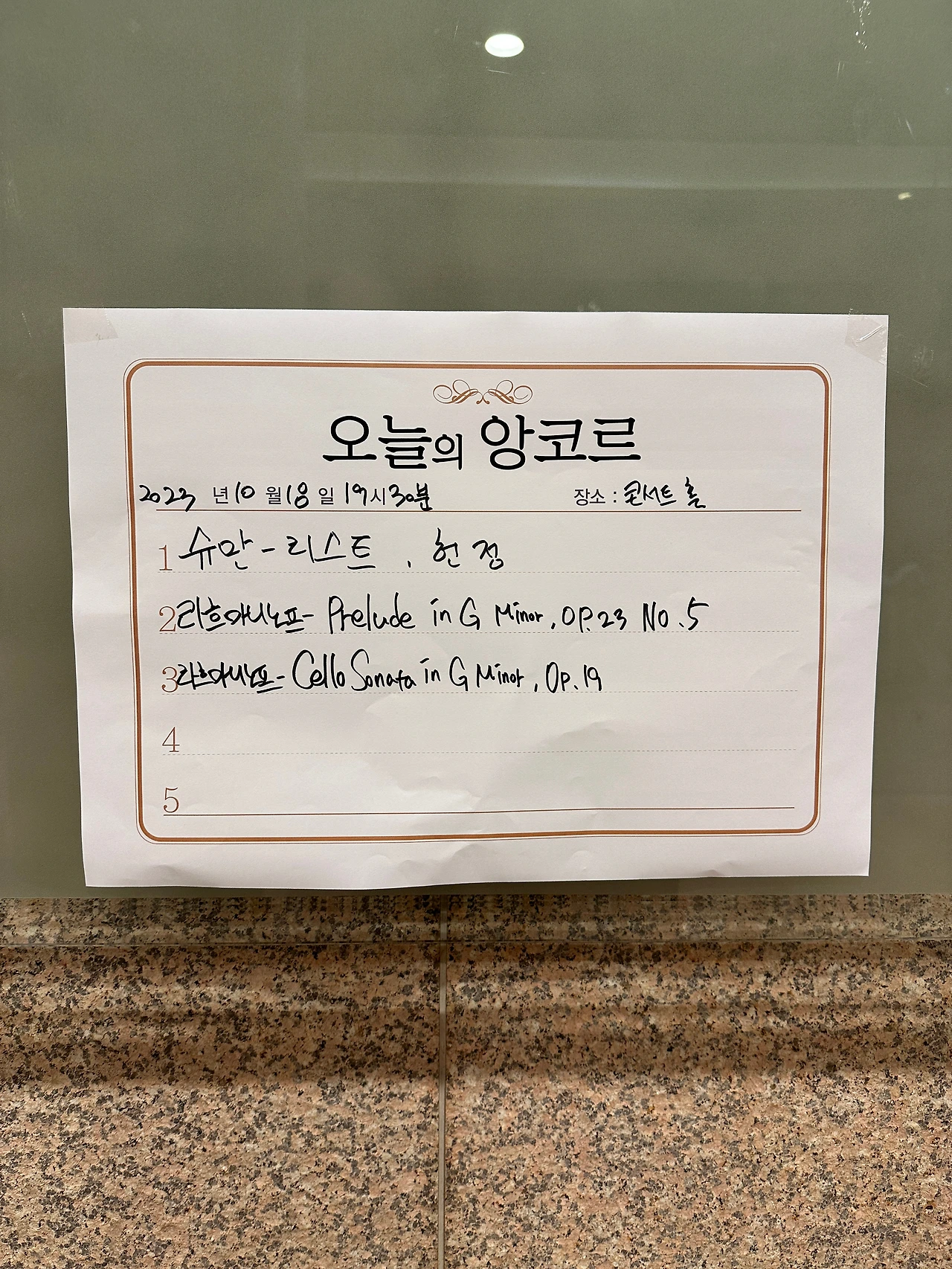 공연 전 프로그램북에 이번 앨범 최애인 ”첼로 소나타“ 없어 실망했지만 왠지 앵콜에 있을거 같았는데 역시나 피날레 장식해서 또 좋았고 ㅎ