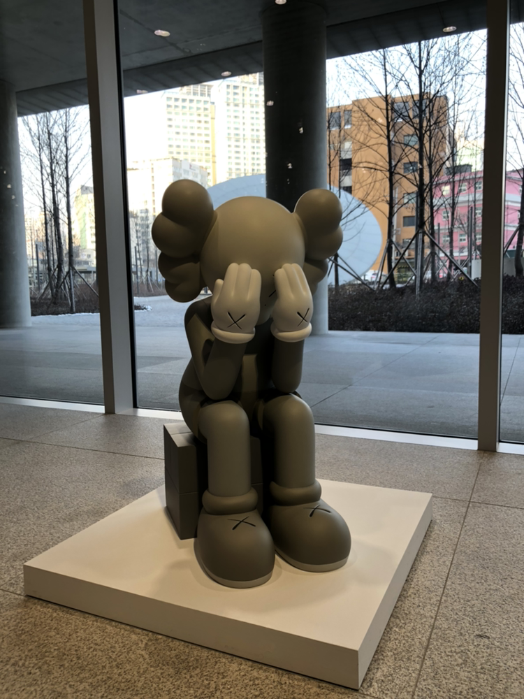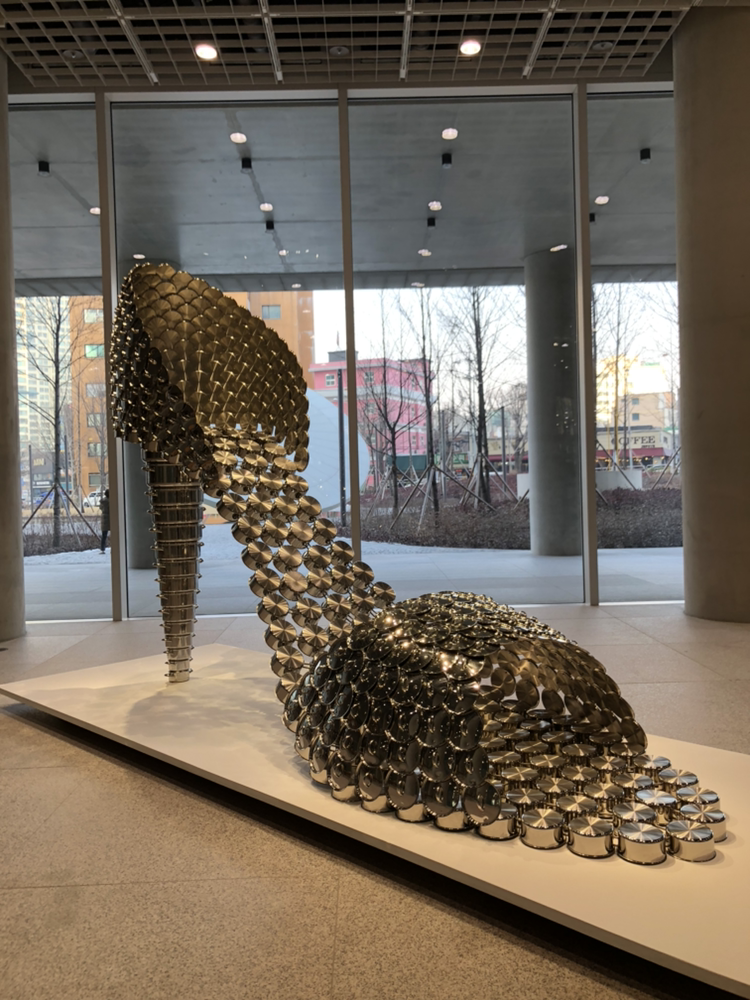 조아나 바스콘셀로스의 <Dorothy> (2010) 는 1층 로비층에서 바로 보이는데 가까이 가보면 이 거대한 하이힐이 냄비와 냄비 뚜껑으로 제작된 것임을 깨닫고 놀라움을 금치 못하게 된다. 전통적 여성상과 현대적 여성상을 잘 보여주는 재치있는 작품이었다. 그 옆에 있던 카우스의 <Companion> (2016) 미키마우스와 인간을 결합한 오브제로 정말 귀여운 느낌이었다.