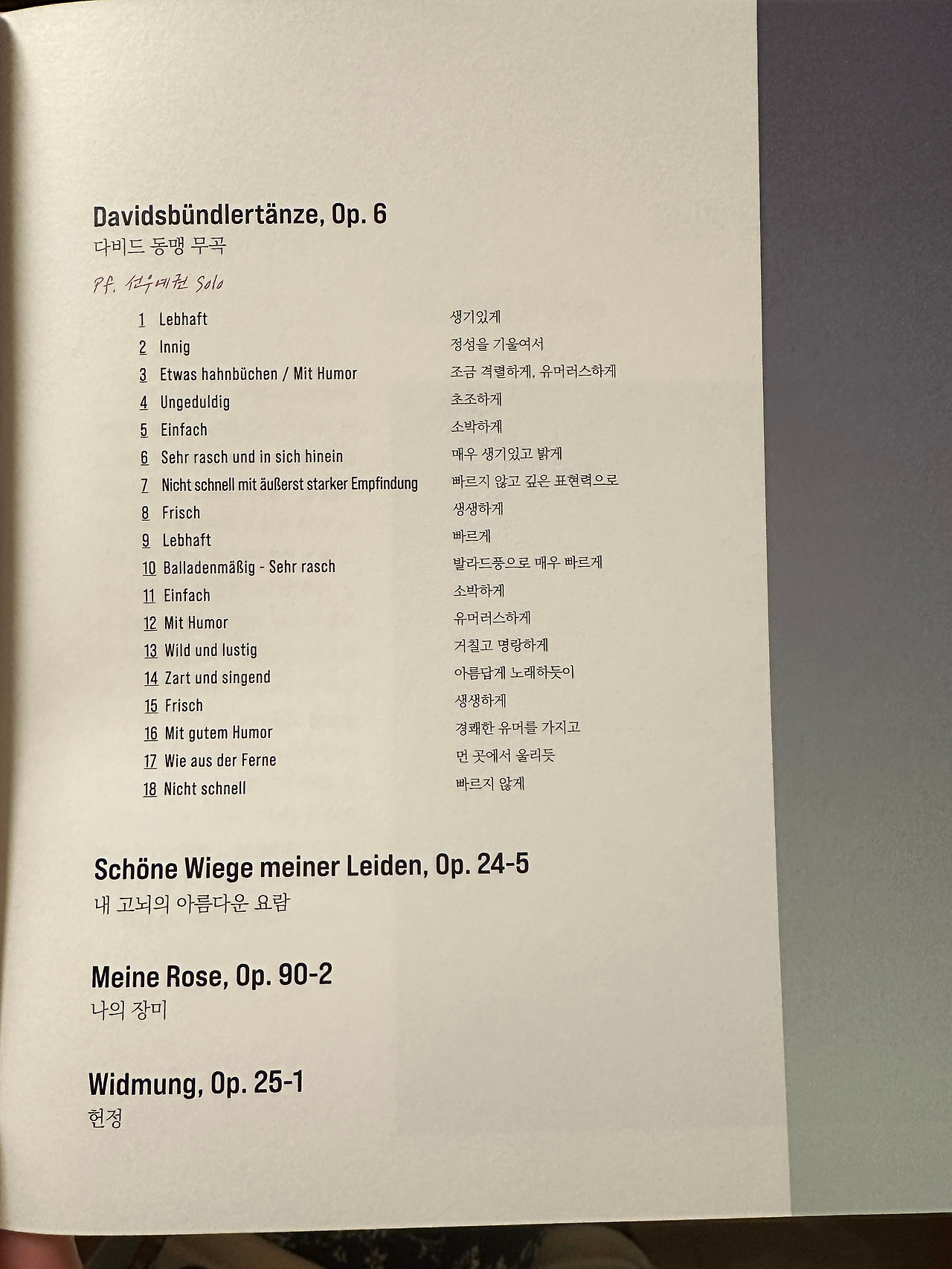 왠지 이번 공연을 보면서 슈만에 대해 조금 더 가깝게 느끼게 되었던 것 같다. 특히 2부에서 예권님이 솔로로 연주한 “다비드 동맹 무곡” 덕에 그랬는데 일단 너무 좋았다. 요즘 리사이틀 갈증 있었는데 약간 풀어주기도 했고..