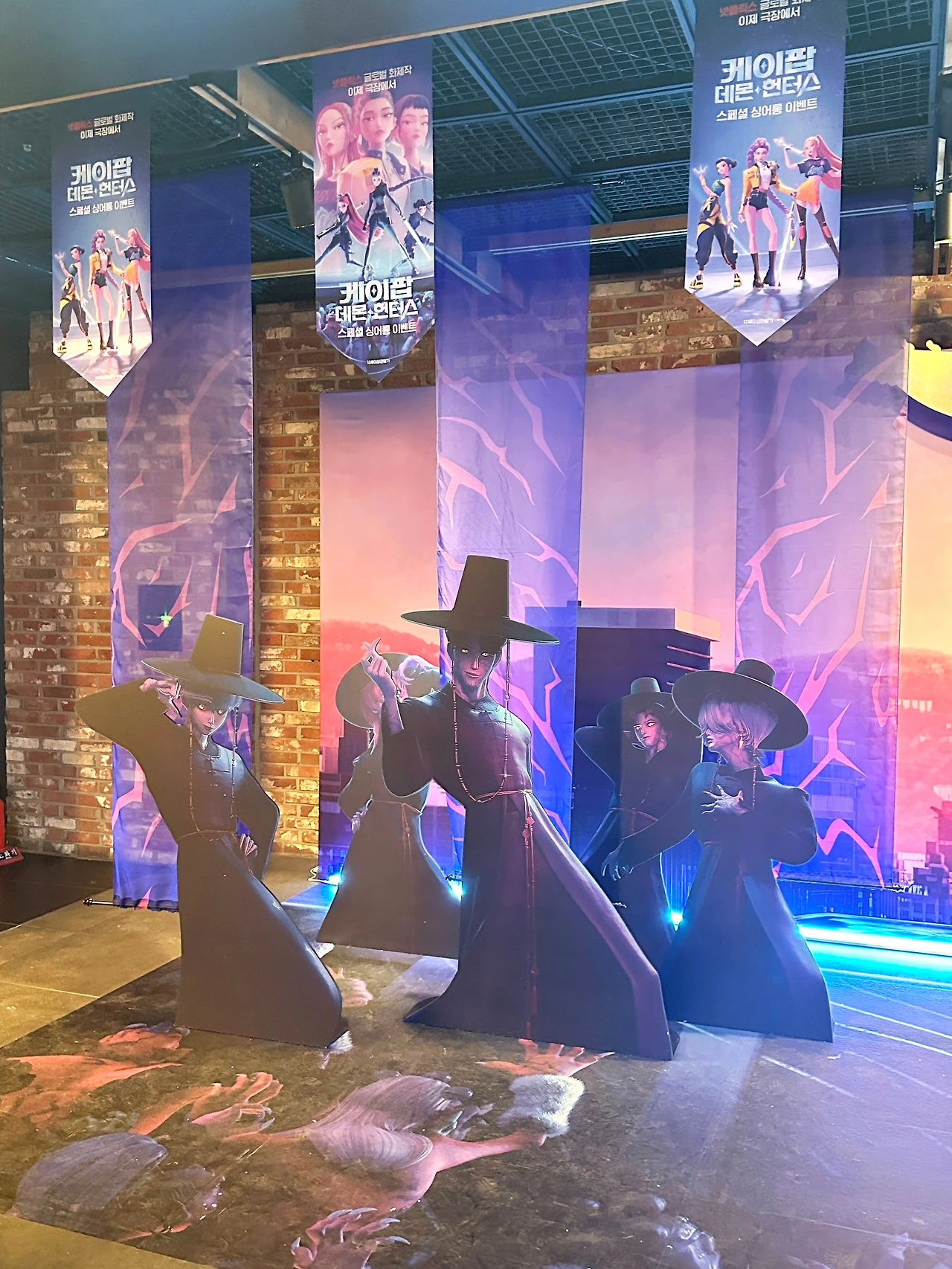 싱어롱이라 조금 너무 시끄럽진 않을까 생각했는데 생각보다 많이 따라 부르진 않았다. 아무래도 골든을 제일 많이 따라 불렀던 것 같고 나도 그때는 같이 불렀고.. 응원봉이 몇 개 보였고, 가끔 영화의 캐릭터들이 대사할 때 대화하거나 응원하는 남자분의 목소리가 들려 같이 웃기도 했다. 영화관 로비에서는 헌트릭스 코스튬을 한 여자분들이 같이 사진을 찍어주기도 하고, 케데헌 코스튬을 직접 입고 온 아이에서부터 남자분들까지 정말 콘서트에 온 것 같은 분위기였다.