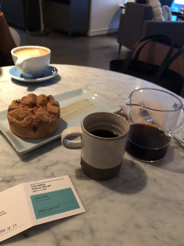 디뮤지엄은 옆에 레스토랑 있는 건물이 같이 있어서 밥을 먹기도 좋다. 아이엠어버거에서 파인애플 버거를 시도해 보았고, 한남동의 또 하나의 핫플인 언더프레셔에 가서 향이 남다른 디카페인 커피와 애플 크럼블. 뭐 하나 안좋은게 없는 그런 날