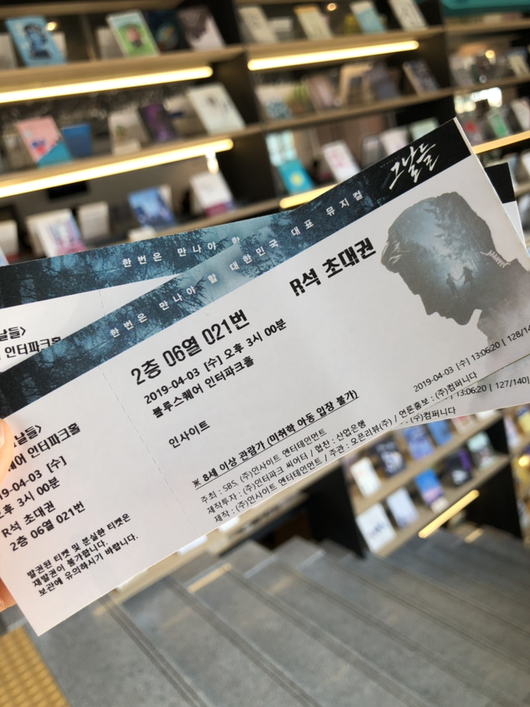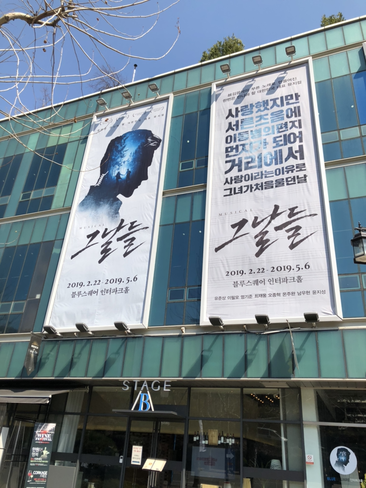 아는 동생 덕분에 진짜 오랫만에 뮤지컬을 보았다! 블루스퀘어 북파크만 매일 갔는데 공연 처음 봄 ㅋㅋ “그날들”이라는 뮤지컬이었는데 김광석님 곡들이 진짜 많이 나온다. 나는 잘 모르지만 아이돌 워너원 멤버 중 한 명이 주인공 중 한 명으로 나와서 역시 팬분들이 많이 오셨던 듯. 오랫만에 뮤지컬 보니 나름 재미가 ㅎ