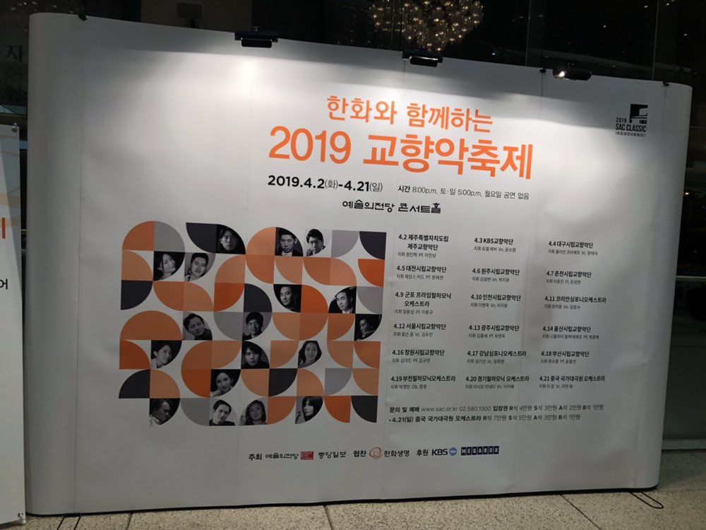 교향악 축제 코리안심포니 오케스트라 공연은 사실 이벤트 당첨이기도 하였고 세계 초연곡도 있고 하여 예습도 못하고 갔는데.. 생각보다 난해했다고 표현할 수 있을 것 같다. 확실히 정치용 지휘의 코리안심포니는 보면 대중성에 크게 매여있지 않을 때가 종종 있다. 이게 장점이기도 약점이기도 하지만 뭐 나쁘지 않은 듯.