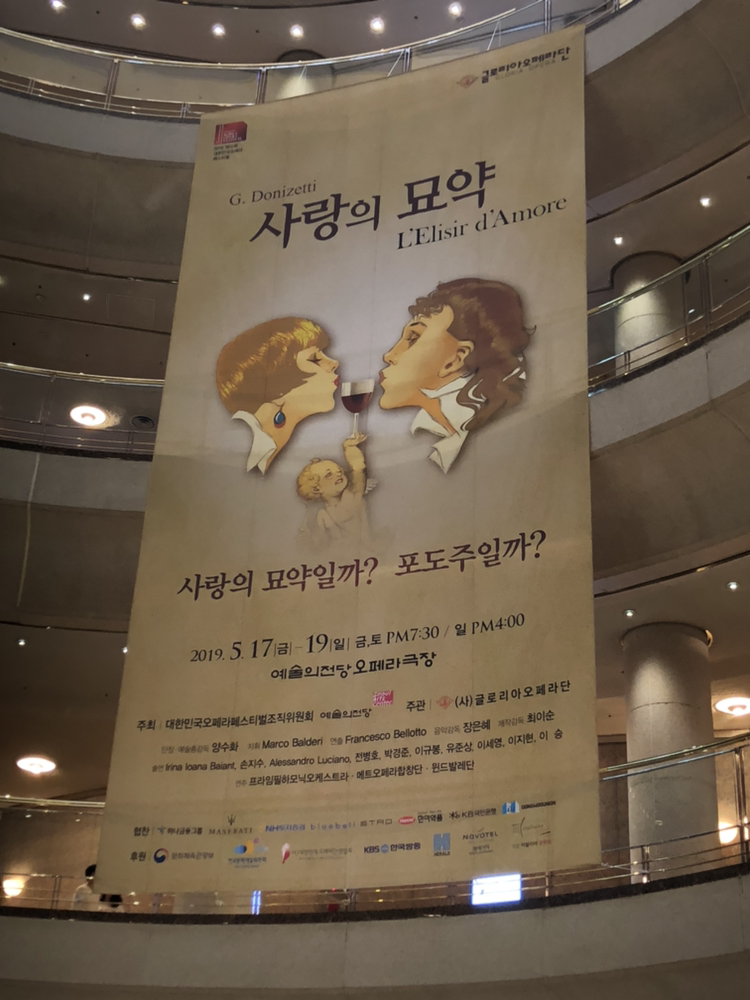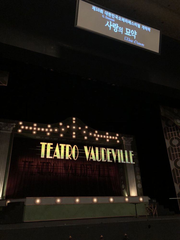 개막작인 “사랑의 묘약”은 글로리아 오페라단에 의해 공연되었는데 이 공연단은 올해로 28주년을 맞았다는듯 하다. 이날 여주인공인 아디나 역은 손지수 소프라노님이 맡아주셨고 남주인공인 네모리노는 전병호 테너님이 맡아주셨는데 두 분 다 너무 음색도 연기도 좋으셔서 감탄하면서 보았다.