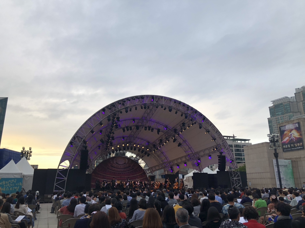 제 10회 대한민국 오페라 페스티벌 개막날! 개막작인 사랑의 묘약을 보러갔다. 이 날 야외무대에서 오페라 갈라 무료 공연도 있어서 조금 보다가 공연 보러 들어갔다.해 질 저녁 무렵 선선한 날씨에 야외에서 대표 아리아곡들을 들으니 정말 좋았다. “달하, 비취시오라” 그리고 “나비부인”의 곡들 듣다가 시간이 다되어 오페라 하우스로 이동.