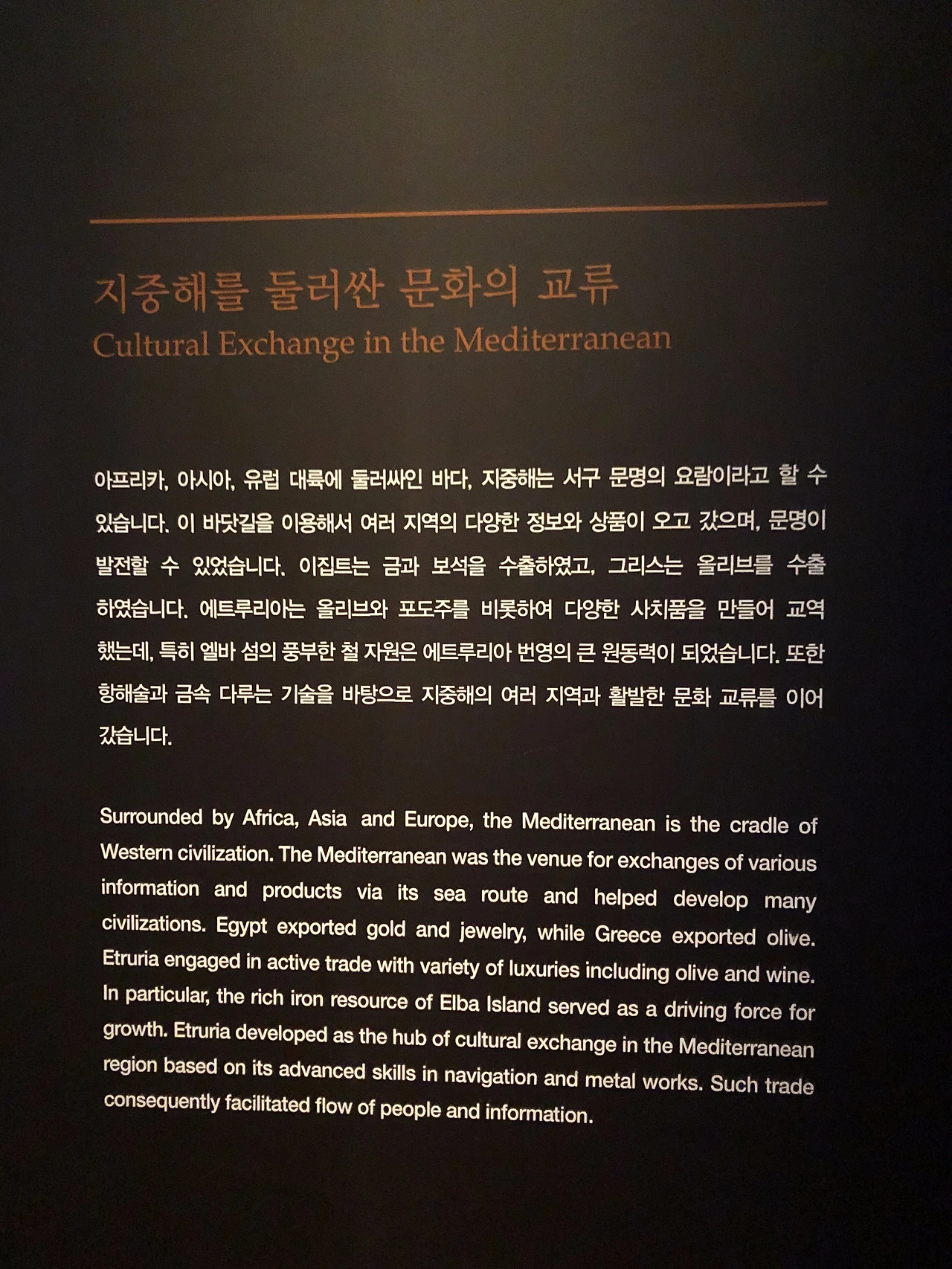 전시를 보면서 얼마전 방영되었던 드라마인 “사임당 빛의 일기”가 생각이 났다. 이영애와 송승헌이 주연이었고 이탈리아의 피렌체를 중심으로 한 토스카나 지방이 중요한 지역으로 등장했었다. 지금 생각해보니 에트루리아 문명이 번성했던 지역이었구나 싶기도 하고, 피렌체는 14세기경 르네상스의 발원지가 되기도 하지 않았던가.