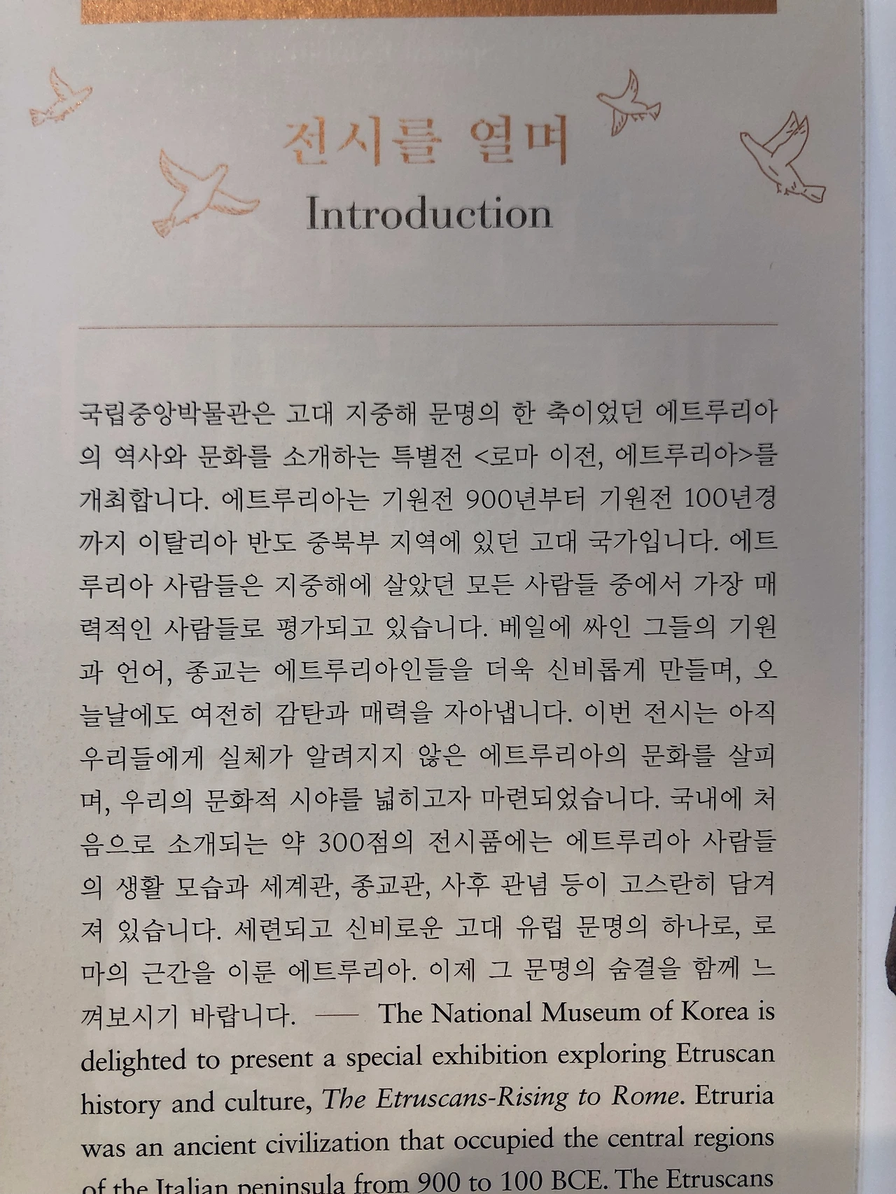 “실경” 산수 말고 좀 더 자유롭게 표현된 산수화나 풍속화 전시가 더 좋은 것 같다. 사임당전도 보기는 했었지만 소규모였어서 여류 화가 작품들도 더 보고 싶고.. 생각보다 김홍도나 정선, 사임당이나 허난설헌 같은 이들의 다양한 작품들을 접할 기회가 많지 않아 좀 아쉽다. 아직 베일에 쌓여있지만 현대 문명에 많은 영향을 미친 에트루리아에 대한 연구도 보다 활발히 이루어졌으면 하는 바램이다. 에트루리아 관련 책들도 좀 읽어보아야 겠다.