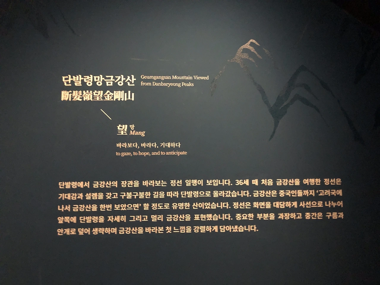 사실 국립중앙박물관 특별전시실에서 하고 있는 “우리 강산을 그리다 - 화가의 시선, 조선시대 실경산수화” 전도 같이 보기는 했다. 통합권으로 끊어서 2천원인가 할인을 받기는 했는데, 이 전시는 상설전시관 쪽에 있어서 짐 맡기고 하는게 불편하기도 했고 작품도 많지는 않았다. 개인적으로 조선시대나 “실경” 산수를 크게 좋아하지 않아 그런 것일수도. 최근 같은 국립중앙박물관에서 한 “근대서화전 - 봄새벽을 깨우다”나 전쟁기념관에서 한 “김홍도 Alive” 전 같은 경우는 상당히 좋았지만.. 정선의 “단발령망금강산도” 하나 건지고 온 듯.