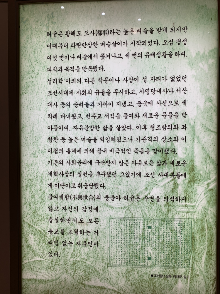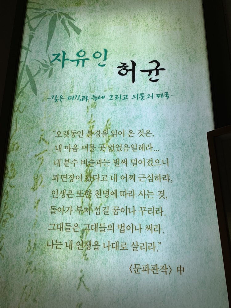 최근 국립발레단에서 "허난설헌: 수월경화" 창작 발레를 올린 적이 있었는데 생가에 와서 보니 다시금 보고 싶다는 생각이 들었다. 오늘 사 온 허균과 허난설헌에 관한 책들도 잘 읽어보아야지. 이영애와 송승헌 주연이었던 "사임당 빛의 일기"도 다시 보고 싶네. 강릉은 자주 와야겠다.
