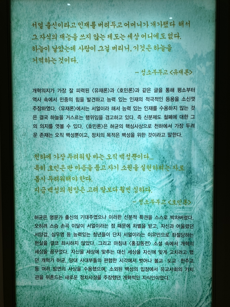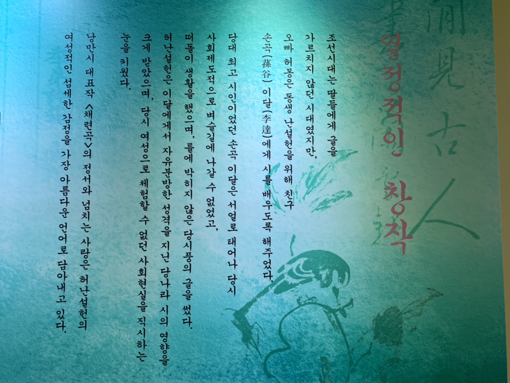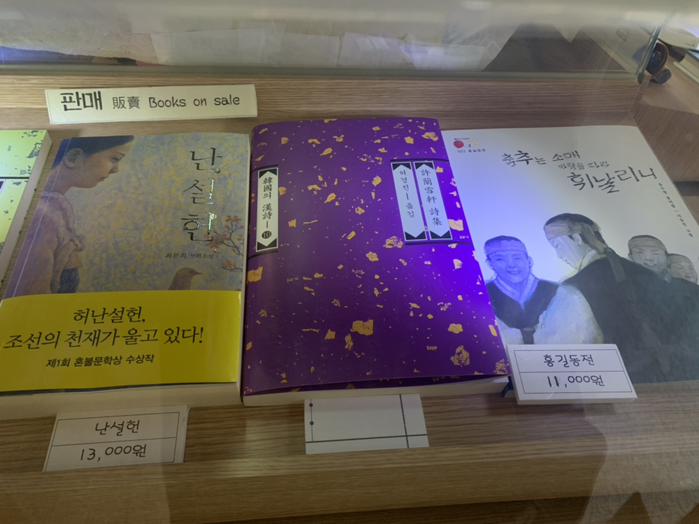 허균•허난설헌 기념관에서 두 오누이의 시집과 더불어 허난설헌 전기로 만든 소설과 한국 최초의 소설인 홍길동전 이렇게 네 권의 책을 샀는데 비매품인 허난설헌의 시집 한문본 원본과 허균 관련 서적을 주셨다. 감사합니다. 잘 읽어볼게요 :)
