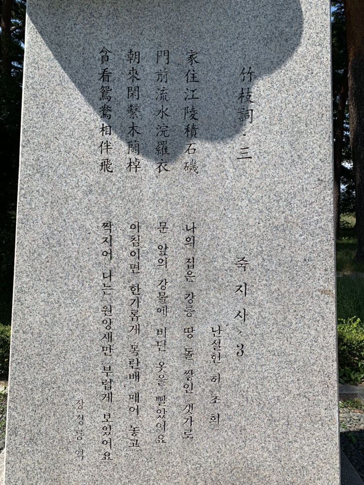 어제 신사임당과 그의 아들 율곡 이이의 생가인 오죽헌에 다녀온 데 이어, 오늘은 허난설헌과 그의 오빠인 허균의 생가에 다녀왔다. 오죽헌에 비해 허난설헌의 생가는 아직 기념 공원 조성이 조금 작게 되어 있는데 앞으로 더 잘 되었으면 하는 바램이다.