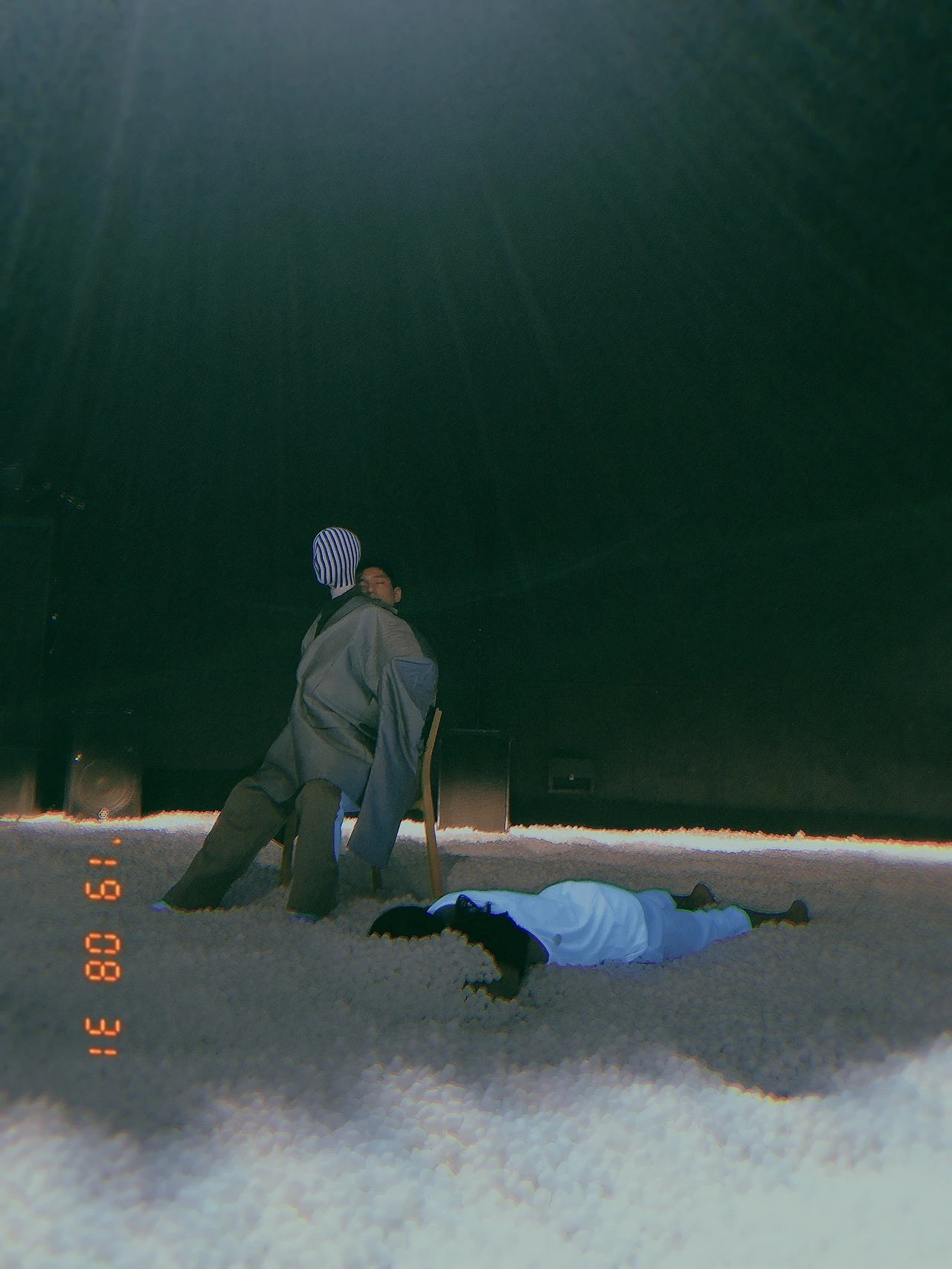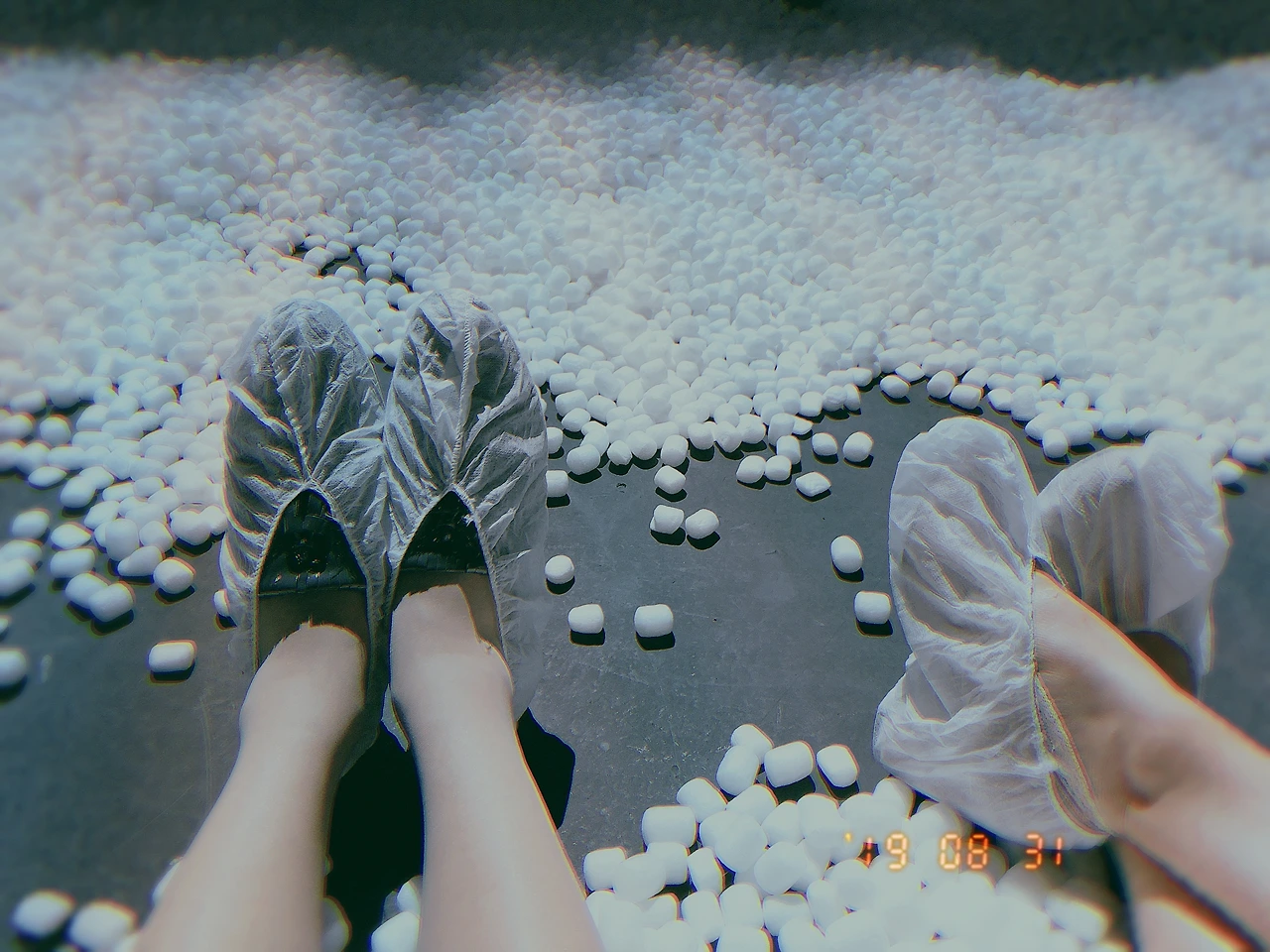 특이했던 것은 공연장에 꼭 덧신을 신고 들어가야 한다는 것이었는데 들어가보니 왜 비지정석에 덧신을 신으라고 했는지 알 수 있었다. 좌석이 없고 하얀 스티로폼 포장재가 눈처럼 깔려 있는 바닥에 관객들이 모두 앉아서 혹은 서서 공연을 관람하는 세팅이었다.
